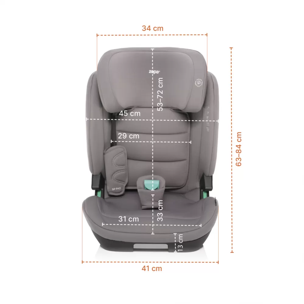Prostorná autosedačka s měkkými potahy a možností naklonění do 4 ergonomických poloh zajistí pohodlnou cestu i při delší jízdě a během spánku. Polohování se dá jednoduše nastavit pojistkou ve přední části autosedačky. Opěrka hlavy nabízí až 10 poloh nastavení, díky tomu autosedačka roste s dítětem.