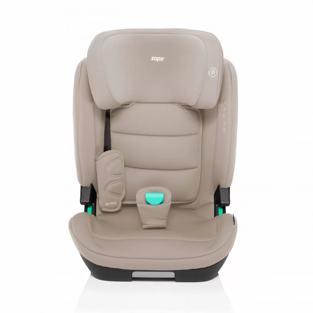 Pro případ čelního nárazu je autosedačka vybavena SP PAD, které redukují zatížení hlavičky, krční páteře a hrudníku. Funkce Belt Lock přidává 4 bod při poutání a při čelním nárazu tak snižuje tlak na bříško dítěte. Integrovaná boční ochrana SIP po celé délce chrání dítě i ve spodní části. Splnění nejnovější normy i-SIZE garantuje bezpečí po celou dobu používání.
