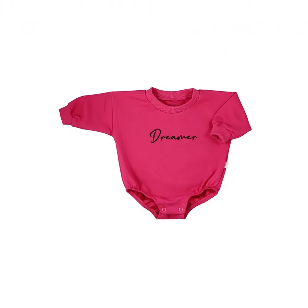 Nápadité body s dlouhým rukávem Koala Dreamer. Body má zapínání na cvočky mezi nožičkama což usnadňuje oblékání a přebalování. Okolo krčku je pružný lem pro snadné oblékáni přes hlavičku. Je zdobeno nápisem Dreamer a je ušito ve stylu baggy z velmi příjemné teplákoviny. Body je pro miminka důležitým kouskem oblečení. Při jakémkoliv pohybu jsou zádička miminka stále přikrytá. Materiál: 96% bavlna, 4% elastan.