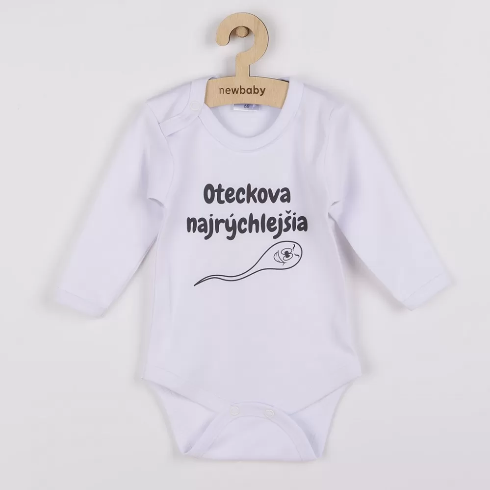 Originální bavlněné kojenecké body s dlouhým rukávem New Baby, s vtipným nápisem OTECKOVA NAJRÝCHLEJŠIA. Barvy použité k potisku jsou certifikované a… Celý popis