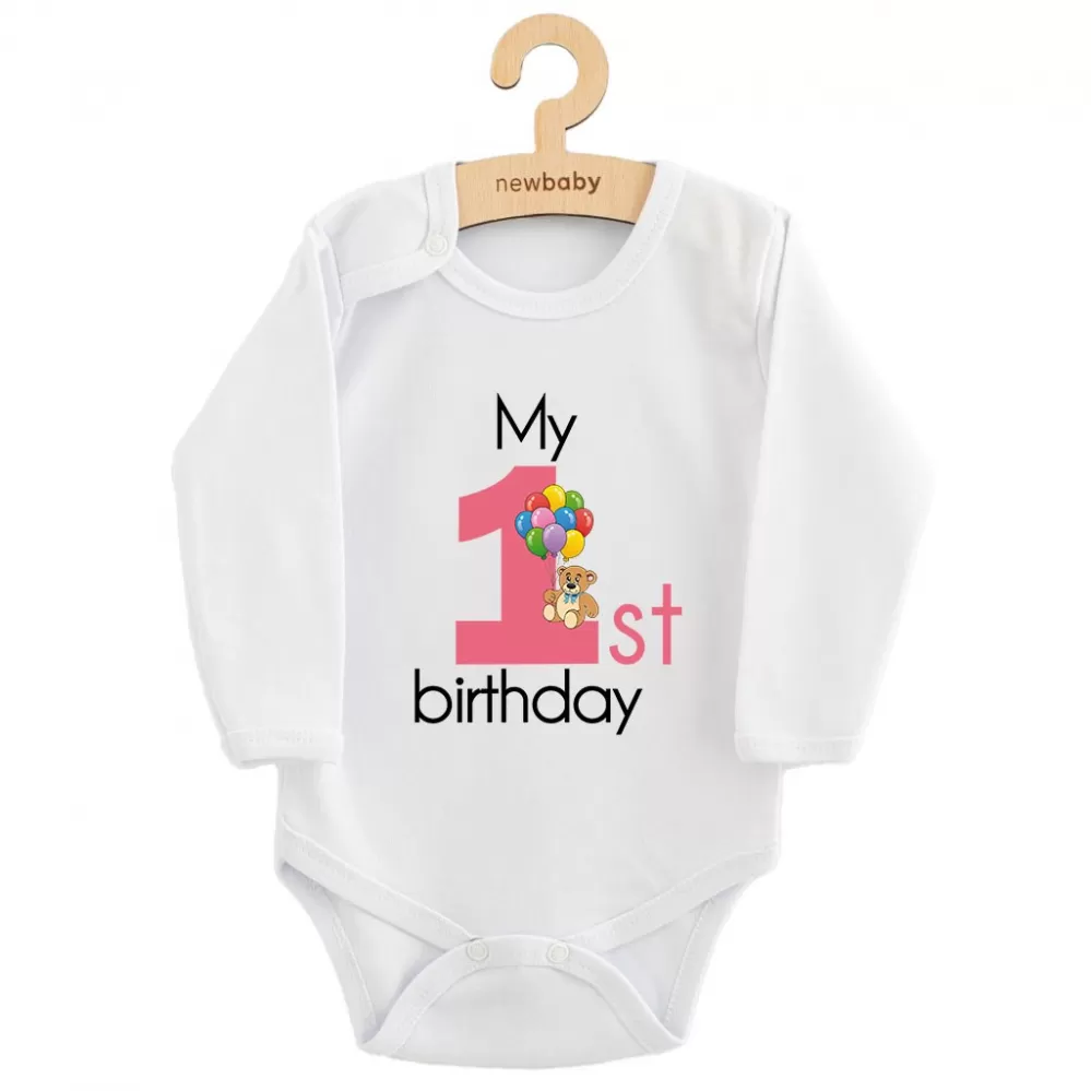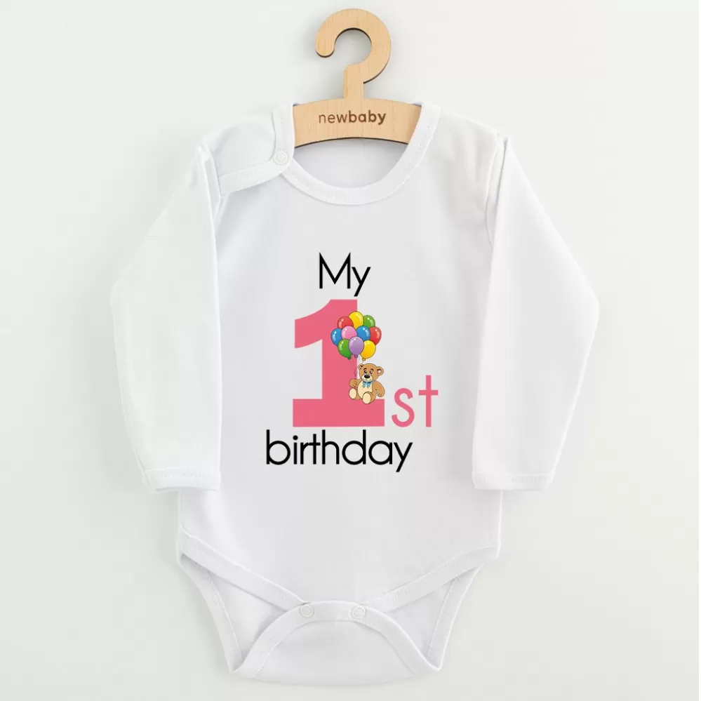 New Baby Dětské body s potiskem My first birthday pink S potiskem Růžová