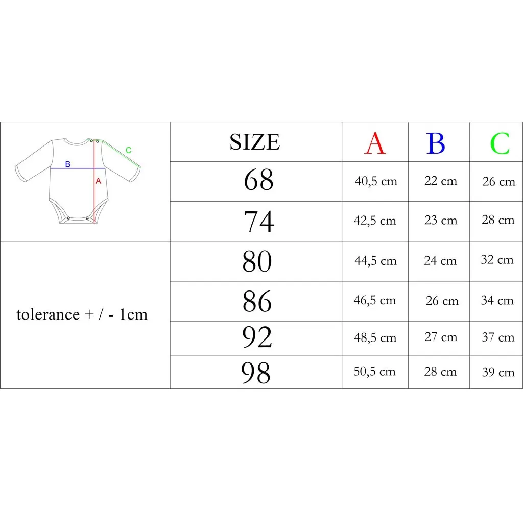 Nápadité bavlněné kojenecké body s dlouhým rukávem Nicol Tomi pro miminka. Body je roztomilé a zároveň praktické. Praktické zapínání na cvočky na ramínku a mezi nožičkama velmi usnadní oblékání a přebalování. Složení: 100% bavlna.
