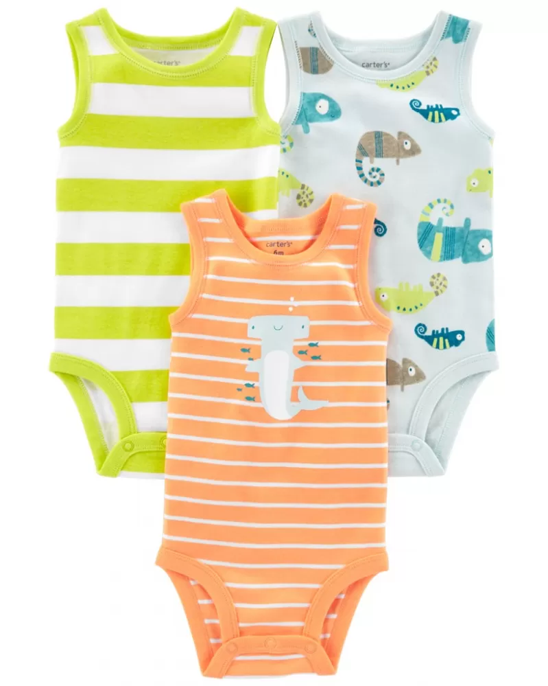 Všechny modely značky Carter's jsou vyrobeny ze super měkké bavlny a spoustou lásky. Body jsou základem výbavičky téměř každého maličkého děťátka. Navrženy jsou tak, aby byly velmi pohodlné na nošení a v trendy barvách. Vlastnosti: - body mají zpevněný výstřih, aby se neroztahoval používáním - patenty na zapínání mezi nožičkami, usnadňují přebalování - oblékání děťátka je jednodušší - příjemně měkký materiál - komfortní pro nošení - body bez rukávů - trendy moderní designy a barvy - použité patenty neobsahují nikl a jsou vhodné pro děti Materiálové složení: 100% bavlna. Údržba: Doporučujeme dodržovat prací symboly uvedené na etiketě výrobku. Pro praní doporučujeme použít prací prostředky značky Chicco. Najdete na našem eshopu.