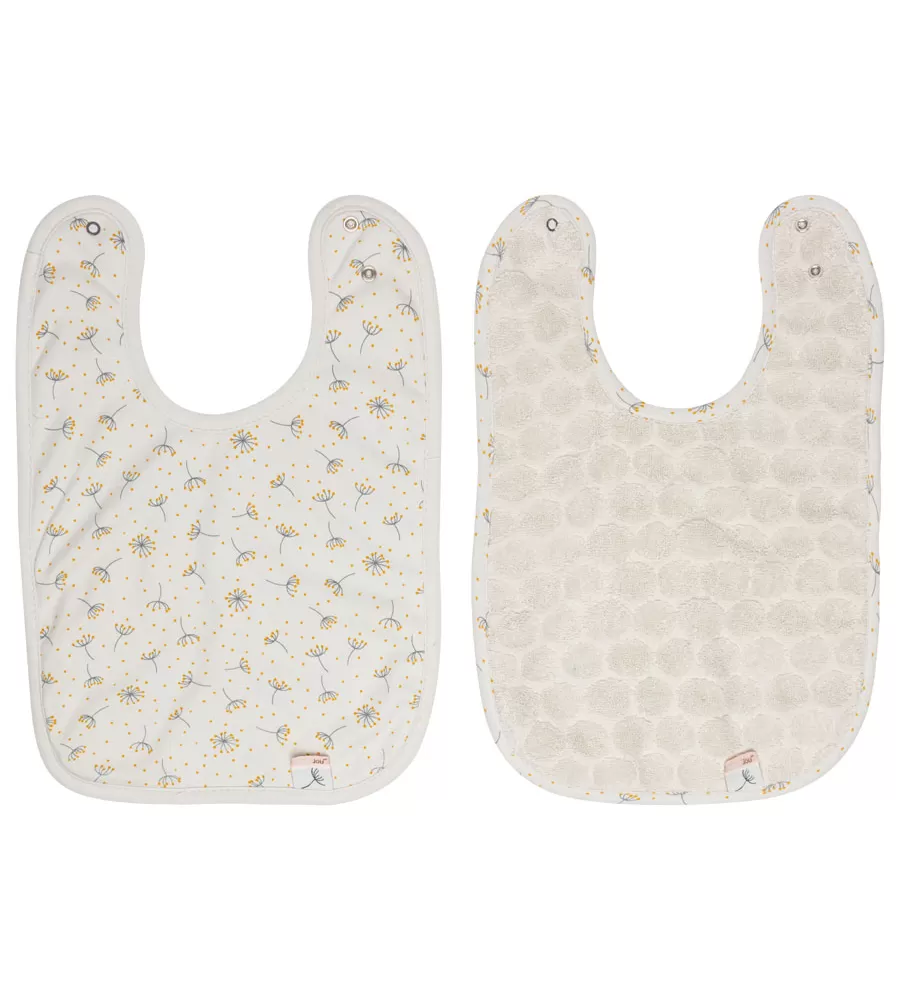 Vyberte si dva nádherné barevně sladěné bryndáčky vyrobené jeden z luxusního žakárového froté s vytkávaným vzorem a druhý z jemného potištěného úpletu s druhou stranou z jemného froté. Jsou nádherné, sluší každému miminku. Navíc ochrání jeho oděv před namočením nebo znečištěním při jeho objevování bohatství chutí.