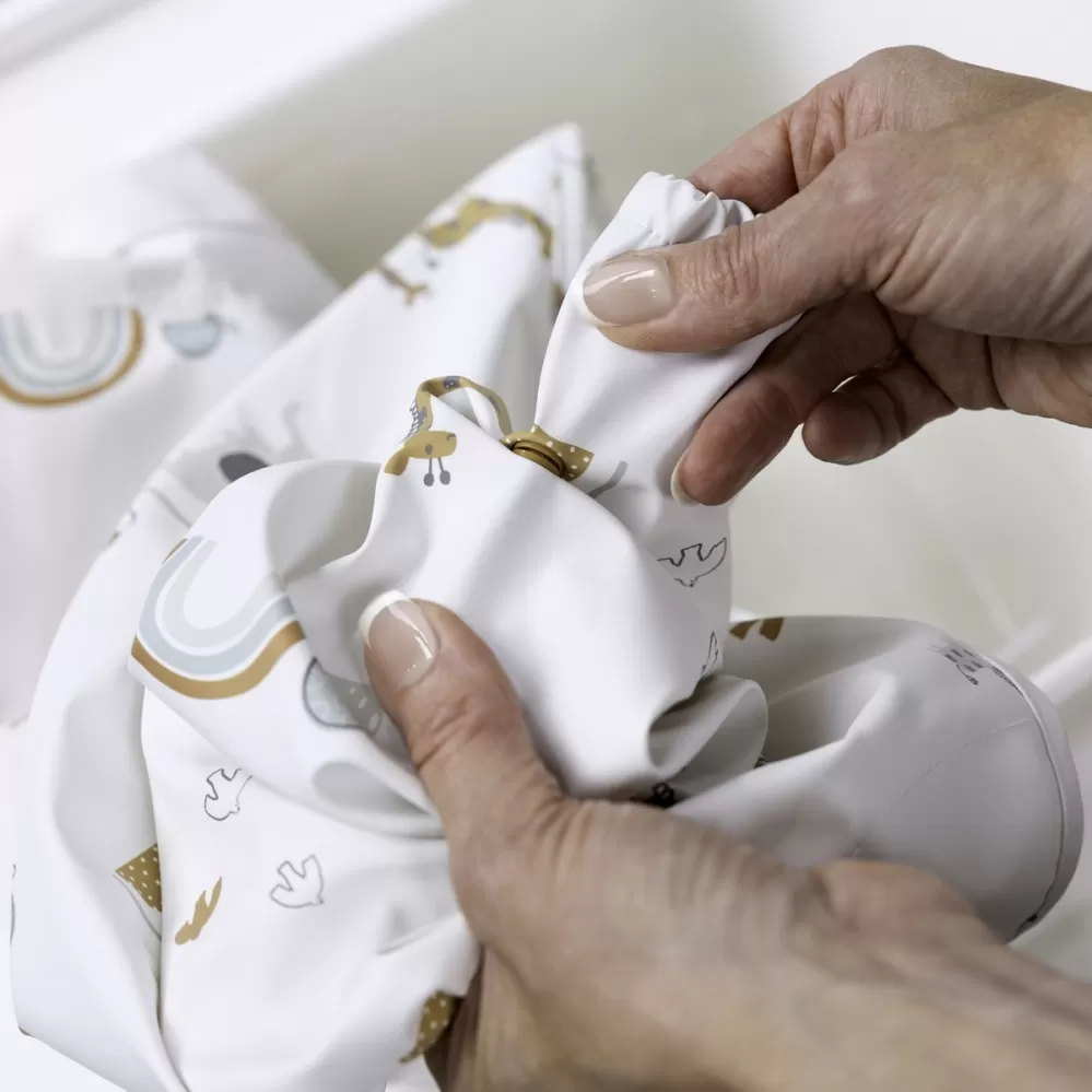 • zapínání na patentky u krku a rukávů pro optimální přizpůsobení velikosti dítěte (pro děti od 6-ti měsíců do 3 let věku)