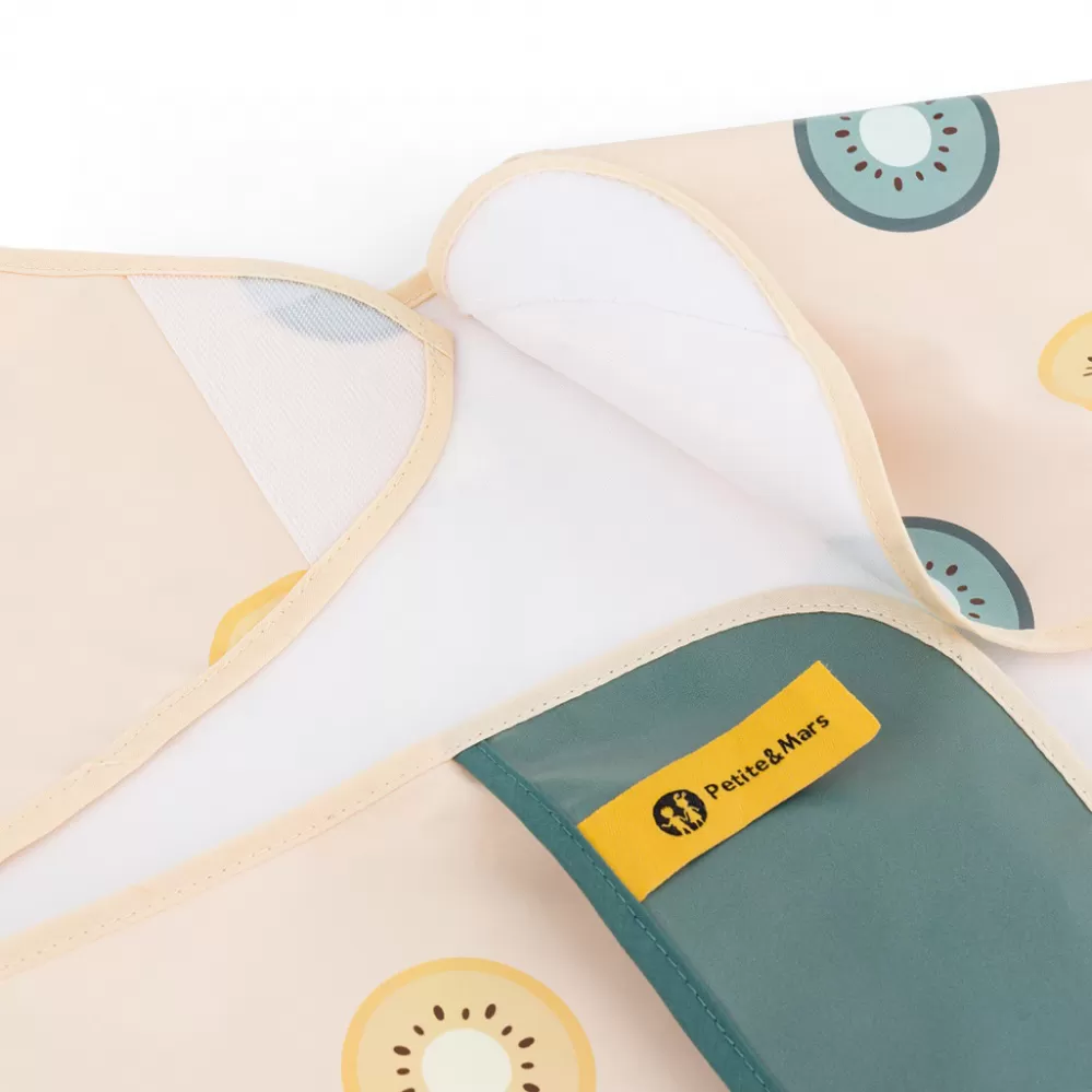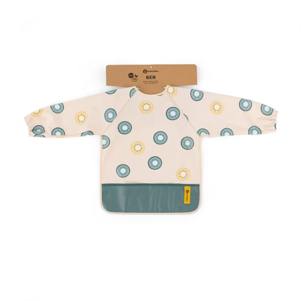 Pohodlný, nepromokavý bryndák s dlouhým rukávem je vyroben z rychleschnoucího, bezpečného PU materiálu, zcela bez PVC a ftalátů. Přední kapsa na drobky zajistí pořádek a pohodlí při krmení a dlouhé rukávy s gumičkou chrání oblečení před zašpiněním a namočením. Bryndák je velmi jemný na dotek a zapíná se na měkký suchý zip. Lze jej používat nejen při jídle, ale také při výtvarných pracích. Chcete-li jej udržet v čistotě, po použití jej jednoduše otřete vlhkým hadříkem.