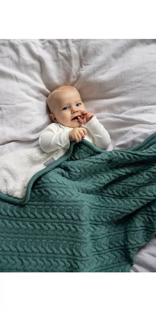 Deka s kožíškem do kočárku a do postýlky oboustranná jedna strana má robustní pletený vzor druhá strana má měkký kožíšek materiál pletené… Celý popis