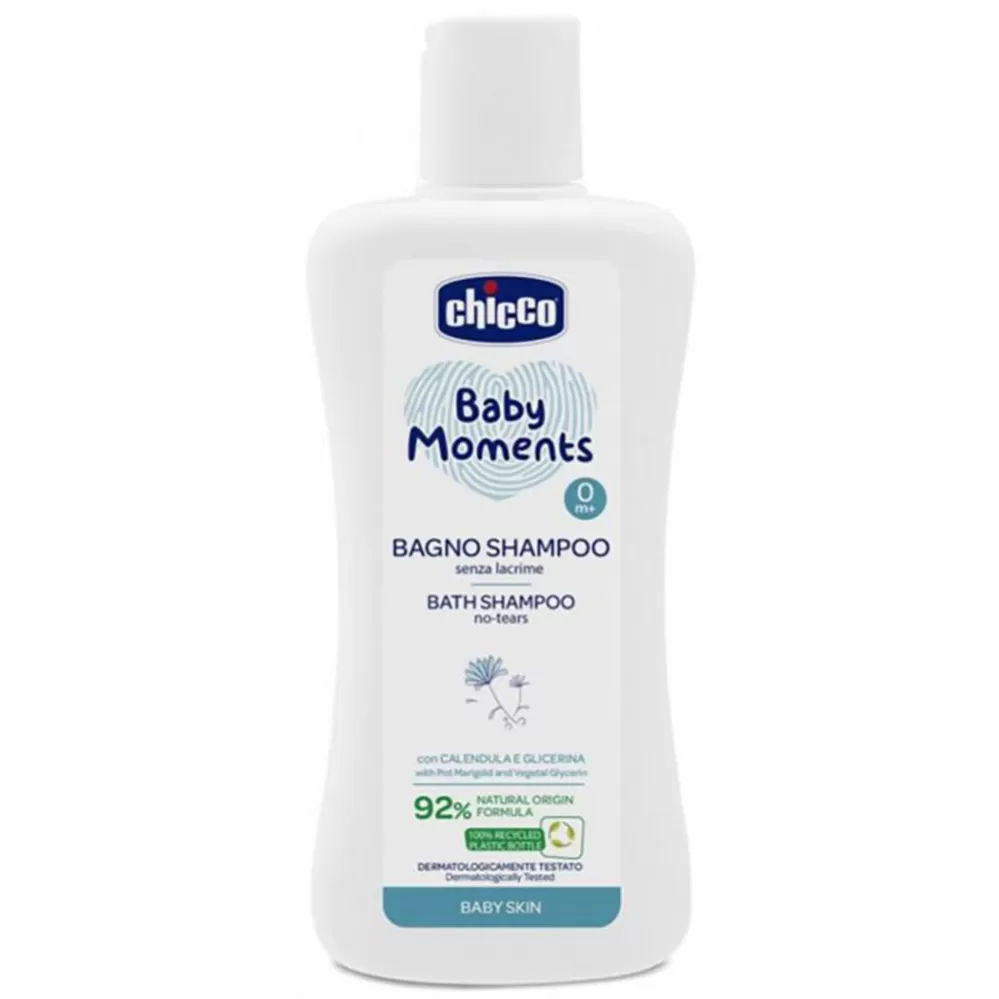 Vlastnosti: - Jeho jemná formule nedráždí dětské oči - Respektuje hydrolipidovou rovnováhu jemné pokožky dětí - Receptura s 92% přírodních složek, změkčující extrakt z měsíčku a rostlinného glycerinu - Dermatologicky a oftalmologicky testováno - Nezaměnitelná jemná vůně Chicco Baby Moments - Určeno: pro děti od narození - Objem: 200 ml