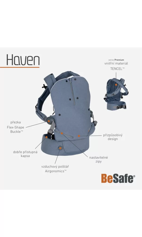 Nosítko BeSafe Haven™: Pro testování a zkoušení při vývoji nosítka a jeho nastavení do 3 různých způsobů nošení jsme oslovili institut Die Trageschule® e. K v Drážďanech – jako respektovaného experta a školitele pro nošení miminek. I díky tomu je nosítko vybavené mnoha chytrými funkcemi pro intuitivní použití, které udržují naše drobečky v bezpečí a dává vám oběma nejpříjemnější zážitky z nošení.