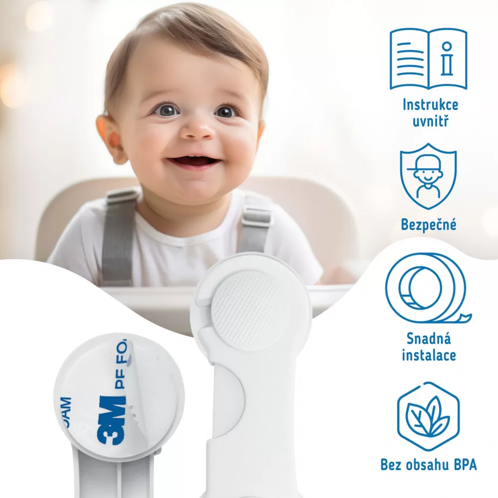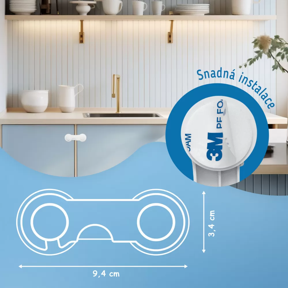 Bezpečnostní zámky mají přímo na sobě 3M pásku, díky které můžete snadno a rychle umístit bezpečnostní pomůcku tam, kde ji potřebujete.