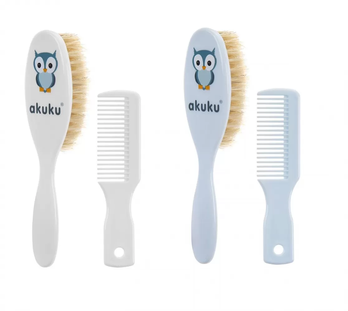 Kartáček a hřebínek s přírodním vlasem Akuku. Vyrobeno bez BPA. Rozměry: hřebínek: cca 11 cm, kartáček: cca 15 cm. Vhodné pro děti od narození. Celý popis