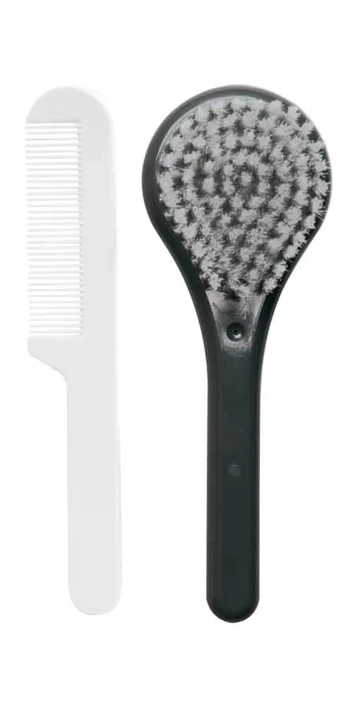 Hmotnost: 0,053 kg. Rozměry: kartáč-14x2,5x5 cm / hřeben-14x2,5x0,5 cm
