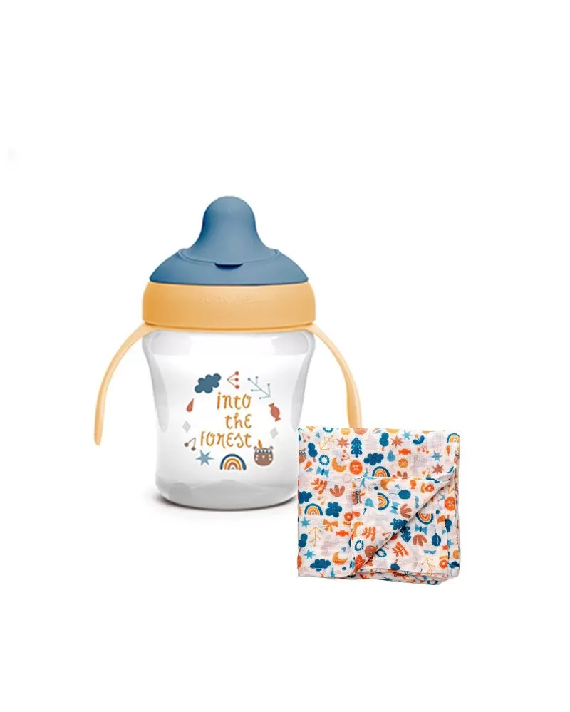 Hrníček s oušky a speciální savičkou má ergonomický tvar a ouška pro dobrý úchop. Ouška jsou odnímatelná pro přirozený přechod na běžný hrníček či sklenici. Speciální savička zabraňuje odkapávání tekutiny a skvrnám. Je chráněna výklopným hygienickým víčkem. Tvrdost přizpůsobena proti prokousnutí, zároveň příjemná a bezpečná pro drobná dětská ústa.