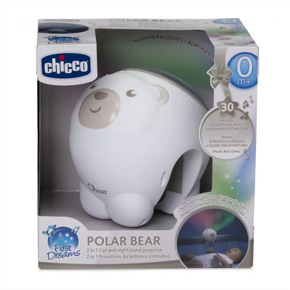 Projektor do postýlky a k postýlce 2v1 s magickou projekcí polární záře a klasické hudby je ideální společník při rituálu uspávání a spánku děťátka. Navíc je v roztomilém designu polárního medvěda.