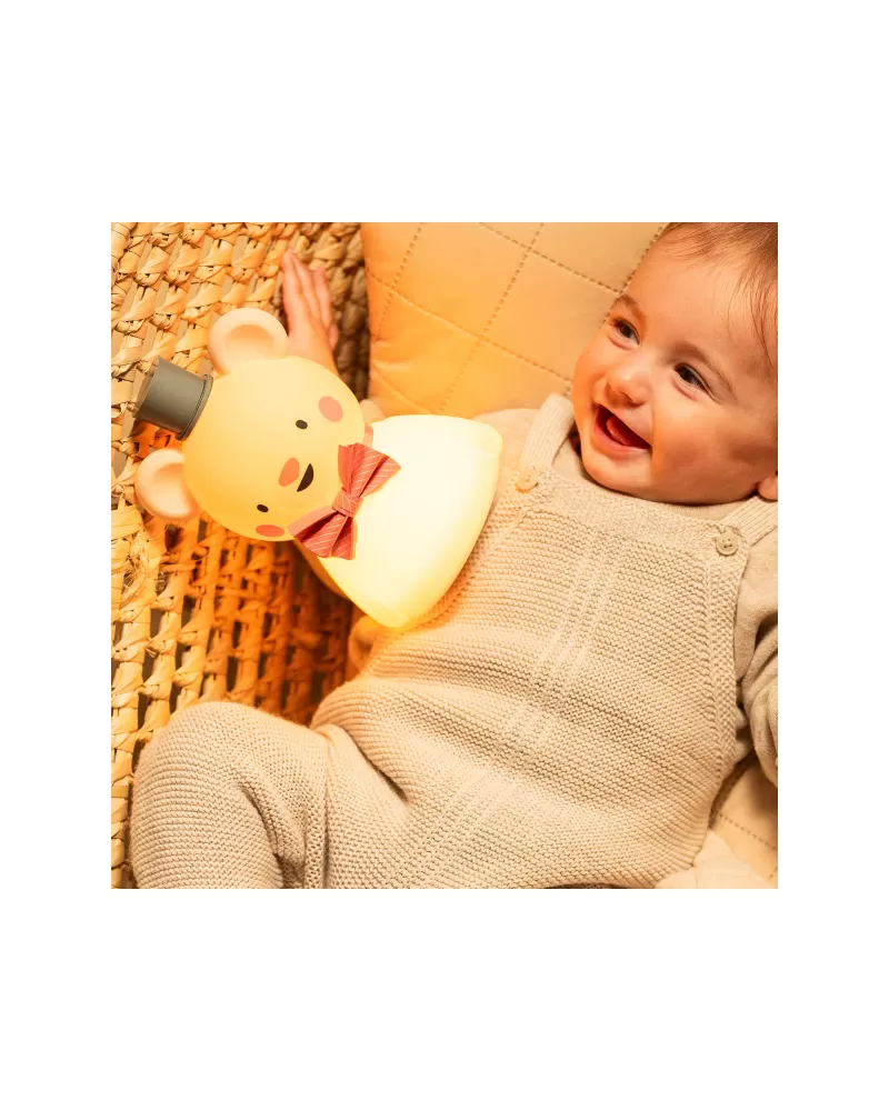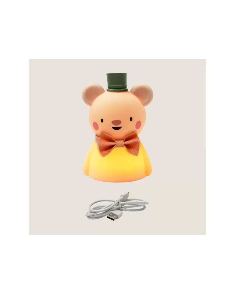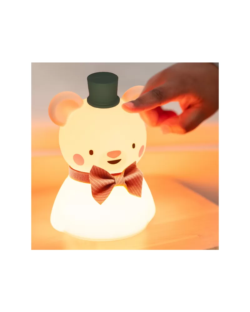 Dětská noční lampička v podbě roztomilého medvídka poskytuje jemné uklidňující světlo, které pomáhá dětem usnout s pocitem bezpečí. Lampička je vyrobena z jemného silikonu příjemného na dotek a nabíjí se pomocí USB-C kabelu.