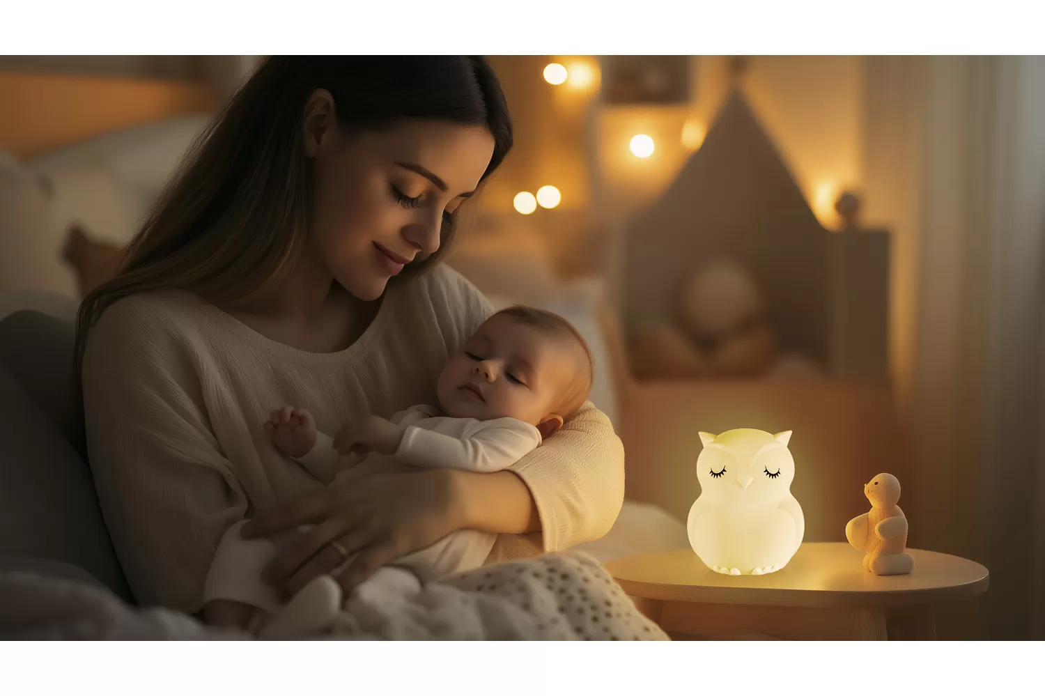 Lampička nabízí stmívatelné bílé světlo, které snadno přizpůsobíte aktuálním potřebám, jako je čtení pohádek, noční kojení nebo přebalování, aniž byste rušili děťátko ostrým světlem. Pro vytvoření hravější atmosféry umožňuje plynulé přechody mezi barvami, které lze snadno měnit jemným poklepáním, případně zastavit na oblíbené barvě. Díky světýlku se bude děťátko cítit bezpečně a pomůže mu s klidnějším usínáním.