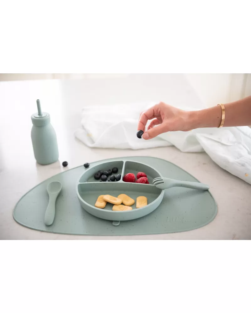KikkaBoo Talíř dělený s přísavkou Platinum Silicone Sage