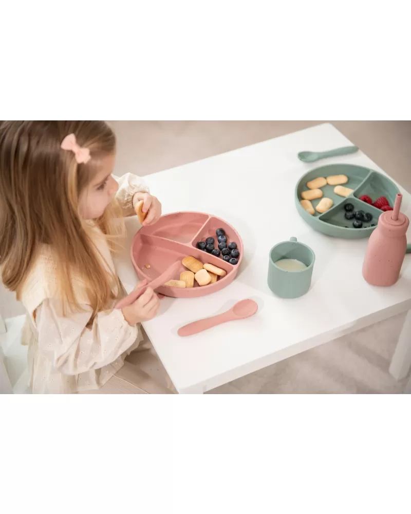 KikkaBoo Talíř dělený s přísavkou Platinum Silicone Blush