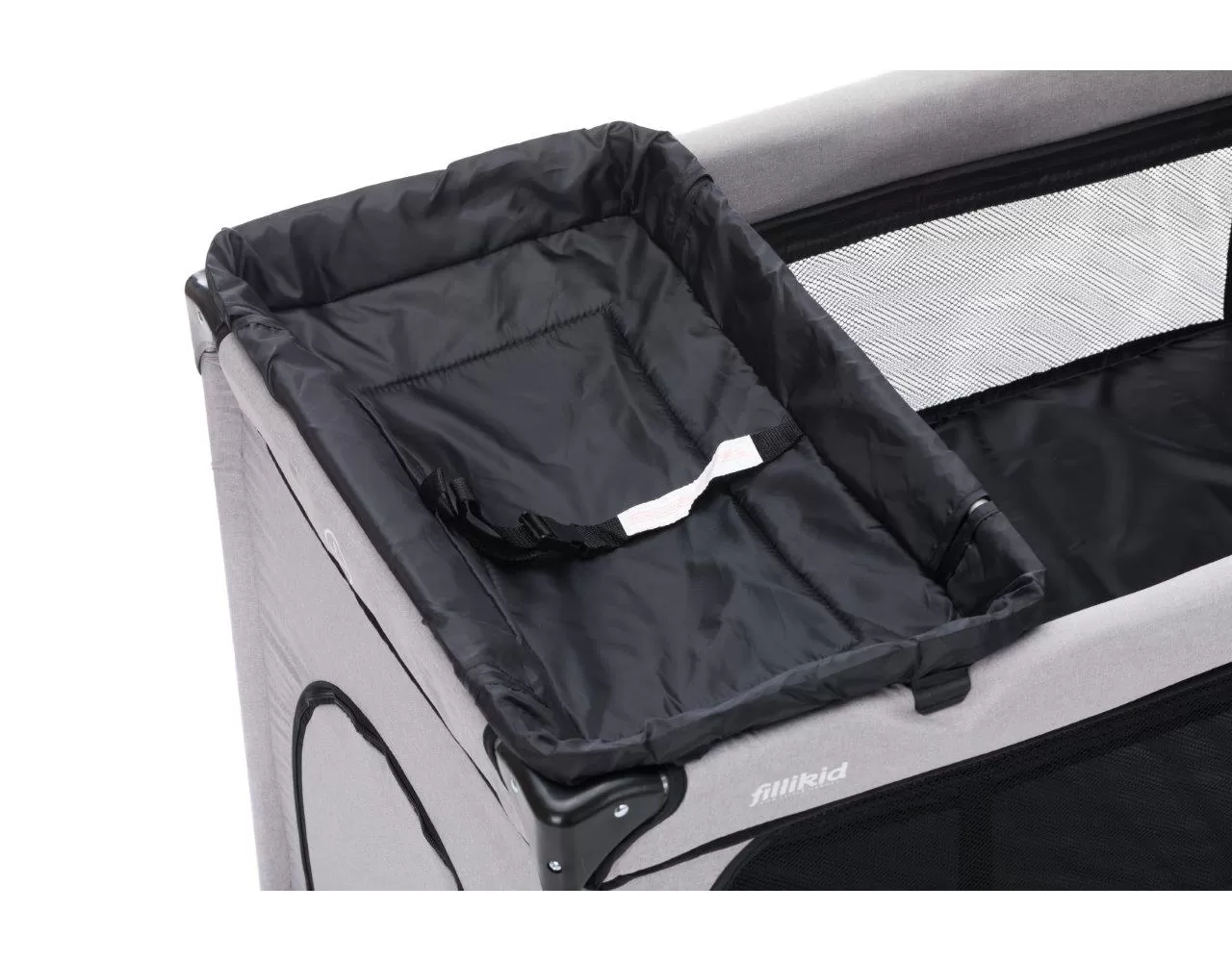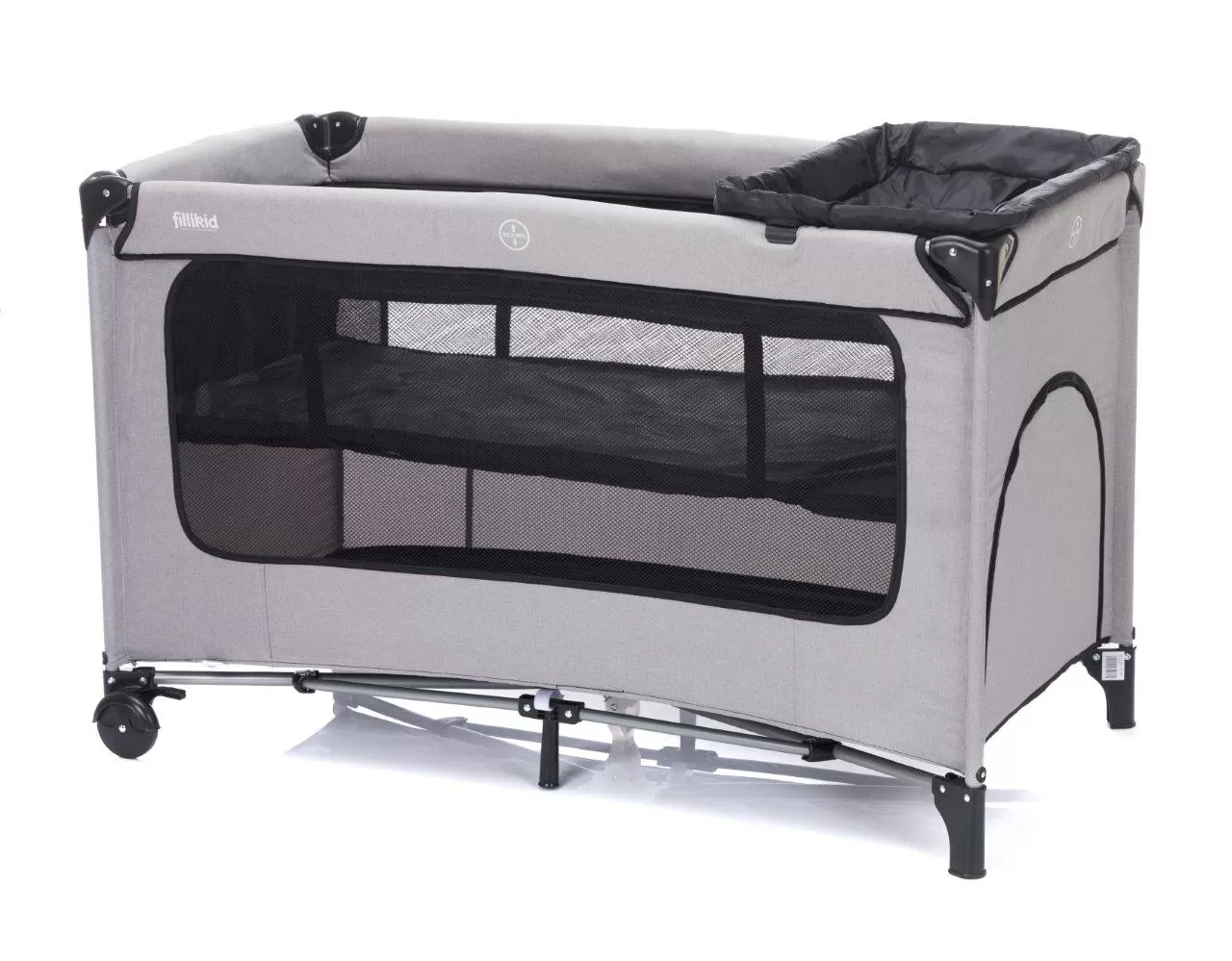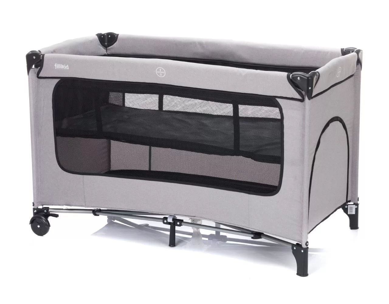 Vaše dítě bude v této cestovní postýlce od Fillikid bezpečně usínat, ať už cestujete nebo navštívíte příbuzné. Cestovní postýlka je uložena v praktické přepravní tašce a lze ji během okamžiku postavit i složit. Díky nízké hmotnosti se dá snadno přenášet pomocí ramenního popruhu. Průhledný síťovaný materiál na boku cestovní postýlky zajistí, že se váš malý miláček nebude cítit osamocený a vy sami budete mít své dítě stále na očích. Síťované stěny navíc udrží vaše miminko v postýlce v bezpečí a zajistí uvnitř dostatek vzduchu. Tato cestovní postýlka značky Fillikid má tři stabilní nohy a dvě praktická kolečka s brzdou, takže postýlku můžete snadno přemisťovat po místnosti. Součástí je stabiliní a pohodlná matrace. Díky praktickému průlezu na úzké straně postele, vaše dítě se z cestovní postýlky samo vyleze. Průlez lze se snadno otevřít a zavřít pomocí zipu.