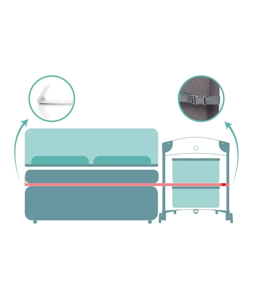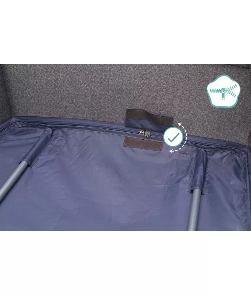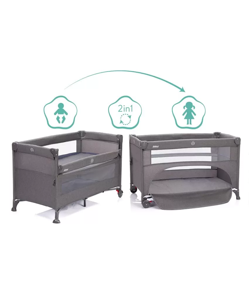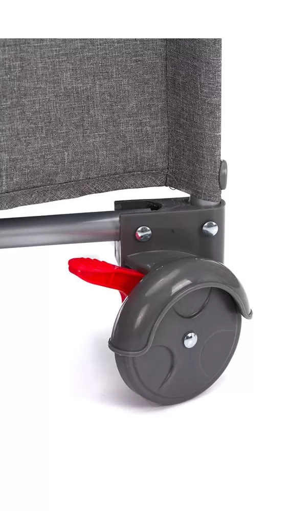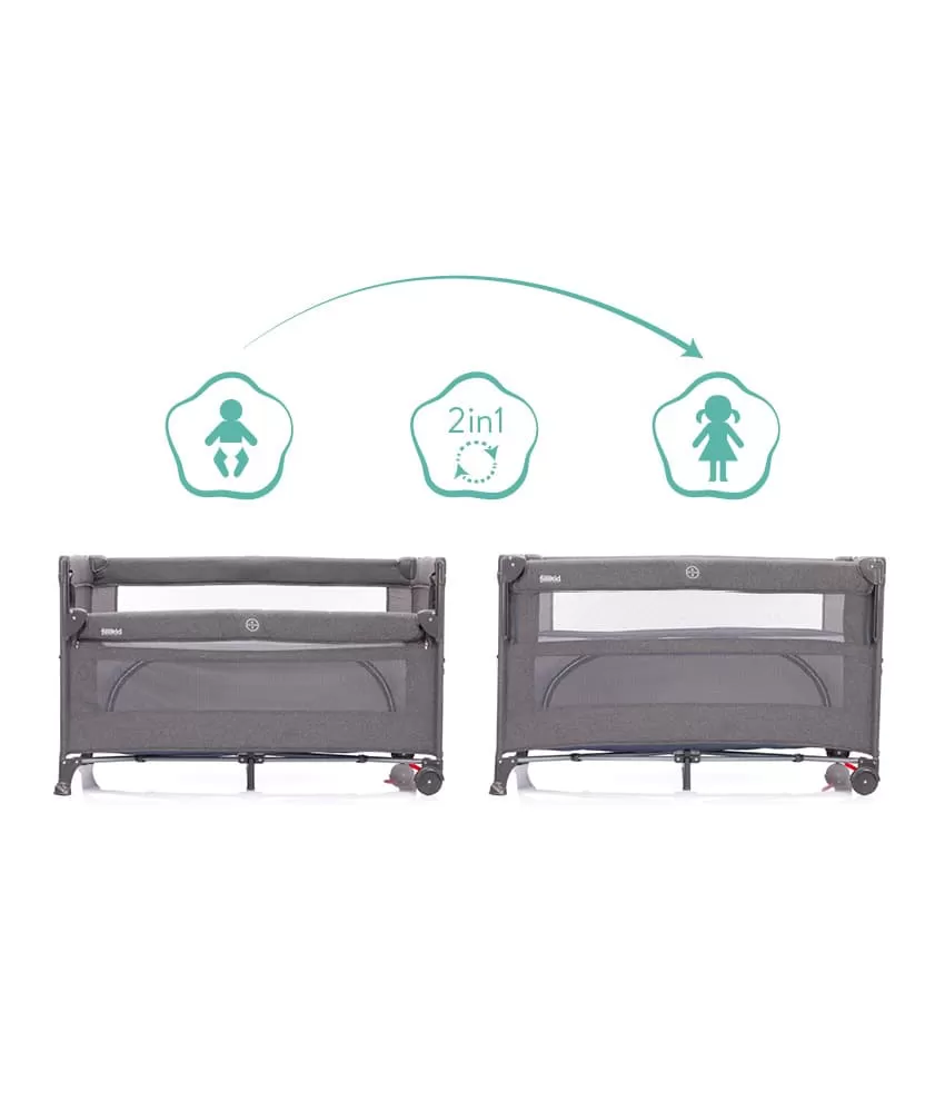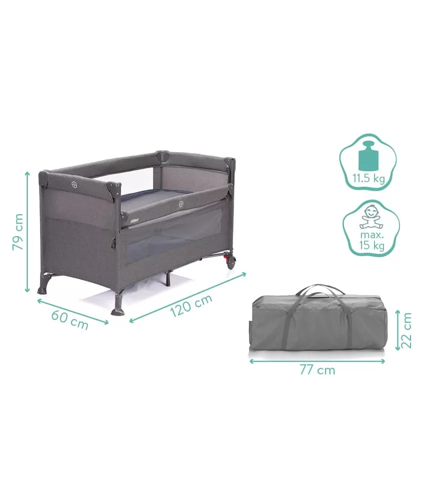 Tato postýlka má tři stabilní nohy a dvě praktická kolečka s brzdou, takže postýlku můžete snadno přemisťovat po pokoji. Boční část tvoří prodyšná síťovina, která zaručuje klidnější spánek. Díky praktickému průlezu na široké straně postýlky vaše dítě samo vyleze. Průlez lze snadno otevřít a zavřít pomocí zipu.Postýlka má výškově nastavitelné dno.