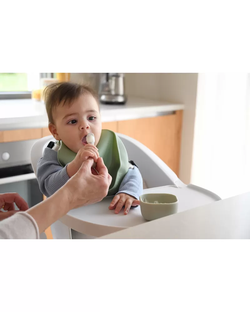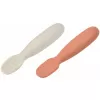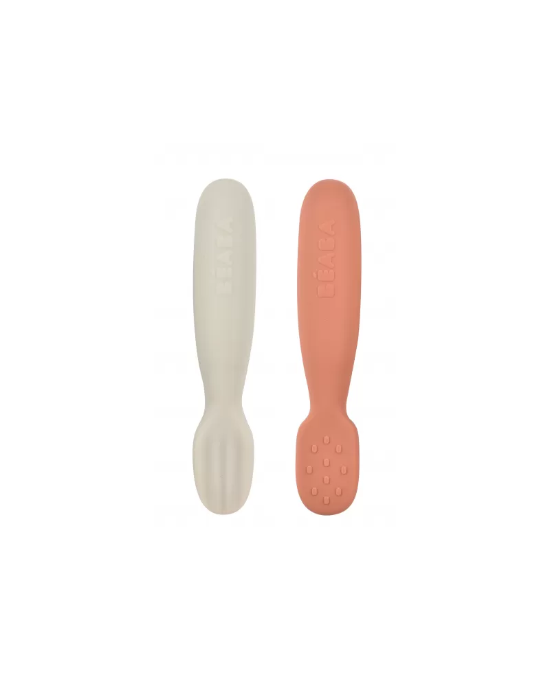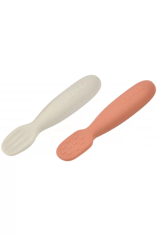 První trénovací lžičky byly navrženy speciálně pro miminka, která se seznamují s prvními příkrmy. Texturované zakončení lžičky nabízí dvě varianty pro různé typy příkrmů - lžička s podélnými vroubky je ideální pro první hladké pyré, lžička s jemnými výstupky pro hrubší příkrm s malými kousky.