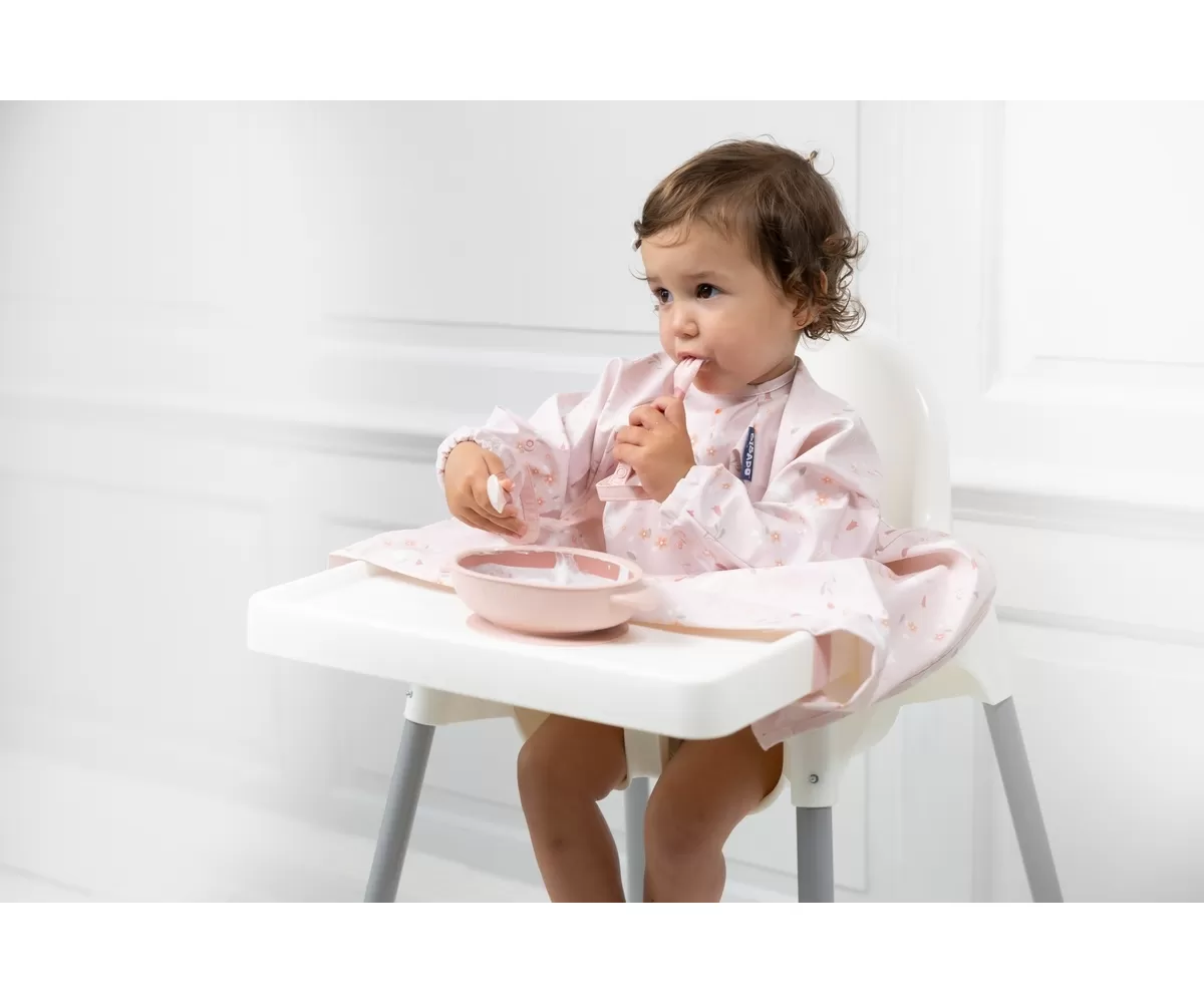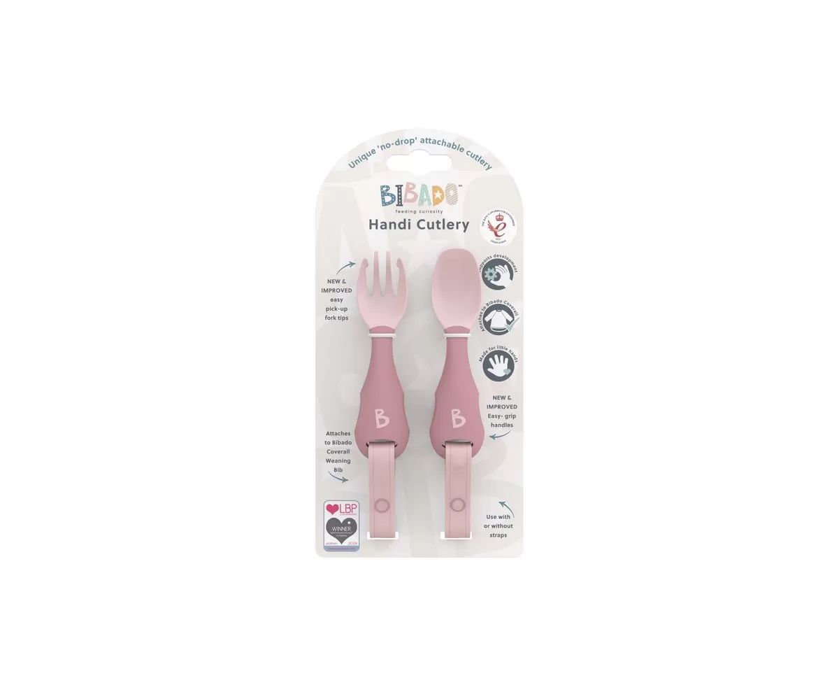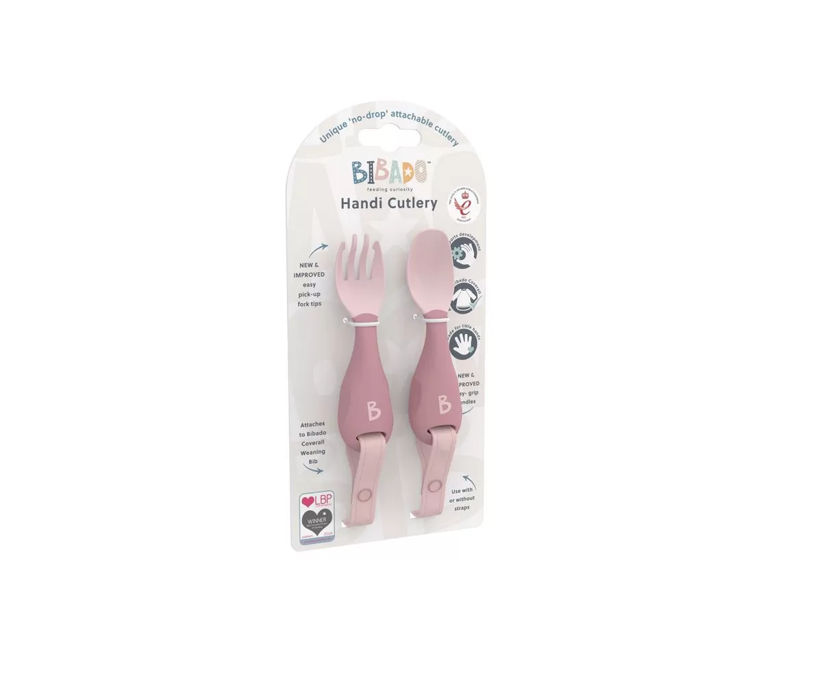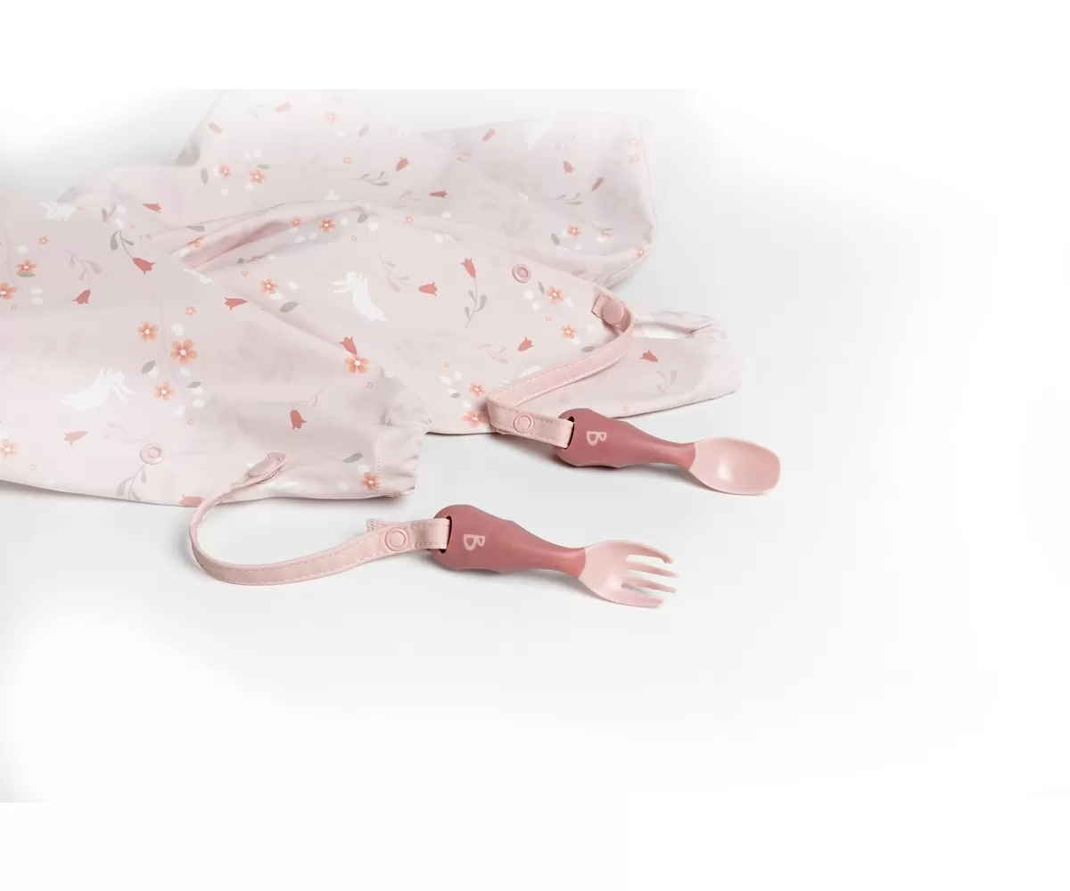 • jedinečný systém „no-drop“ - příbor se jednoduše připevní k bryndáku pomocí integrovaného pásku a patentků