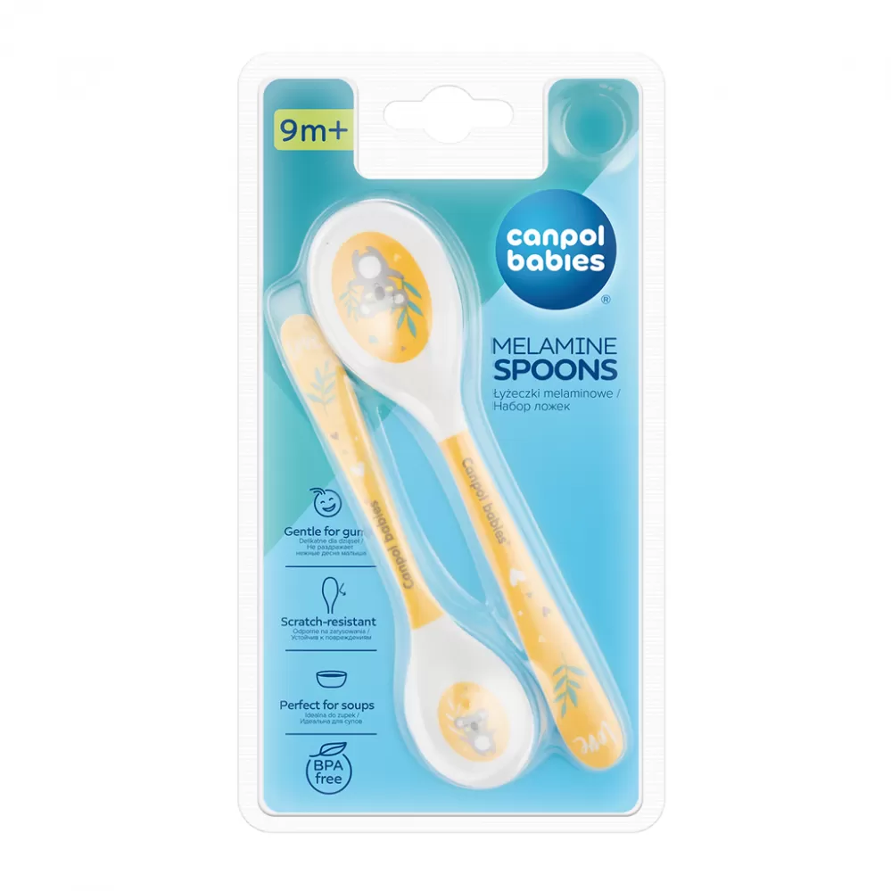 Sada lžiček na krmení z oblíbené kolekce EXOTIC ANIMALS. Vyrobeny z melaminu, materiálu odolného proti poškrábání. Zaoblené tvary nedráždí jemné dětské dásně. Lžičky mají barevné potisky, které jsou pro děťátko dalším lákadlem během jídla. Sada se skládá ze dvou čajových lžiček: malá a velká. Vhodné pro děti 9-ti měsíců. Lze umývat v myčce na nádobí, neobsahují BPA.