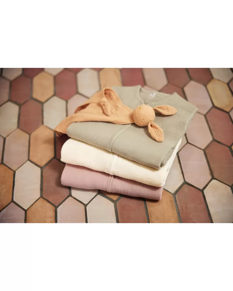 Lehký spací pytel z jemné 100% bavlny má zip na přední straně pro snadné vložení dítěte do spacího pytle i přebalování během spaní.