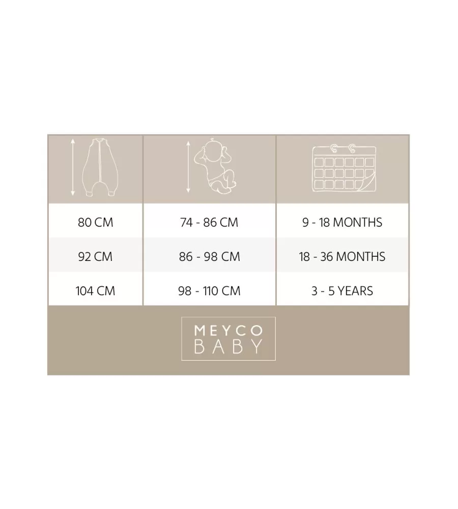 Pohodlný a prodyšný spací vak s otvory pro nožičky.Mušelínová bavlna velmi dobře dýchá, výborně absorbuje vlhkost a rychle schne. Vyrobeno ze 100% předeprané mušelínové bavlny. Kód: 1850006206 EAN: 4054703806267Vyrobeno ze 100% předeprané mušelínové bavlny. Velikost: 104 cm pro použití od 3 do 5 let a délka cca 98 až 110 cmPro určení správné velikosti spacího pytle je důležitá výška vašeho dítěte než věk. Nikdy nepoužívejte spací pytel, pokud hlava vašeho děťátka projde otvorem na krk. Vždy se tedy ujistěte, že používáte spací pytel správné velikosti.Spací vak na spaní má hodnotu TOG 0,5. Čím vyšší je hodnota TOG, tím je teplejší.Lze prát v pračce maximálně na 40 stupňů.Vhodné pro sušení v sušičce při nízkých teplotách. Informace o výrobci MEYCO b-boo baby & lifestyle GmbHTackenweide 5446446 Emmerich am RheinGermany Phone number: +49 (0)2822 976500 https://www.meycobaby.com/E-mail: info@meycobaby.com Bezpečnostní upozorněníVýrobek není hračka. Nevystavujte blízkosti ohně. Plastový obal držte mimo dosah dítěte, hrozí nebezpečí udušení.
