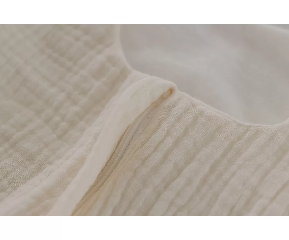 Nejdůležitější je, že látka je prodyšná. Volná a lehká vazba mušelínu umožňuje cirkulaci vzduchu a snižuje riziko přehřátí. Tato funkce zajišťuje, že se vaše dítě cítí pohodlně. Mušelín je také odolný. Výrobek vyrobený z přírodního vlákna mušelínu je extra odolný a vydrží vícenásobné praní – obrovská výhoda pro rodiče. S každým praním je dokonce měkčí.