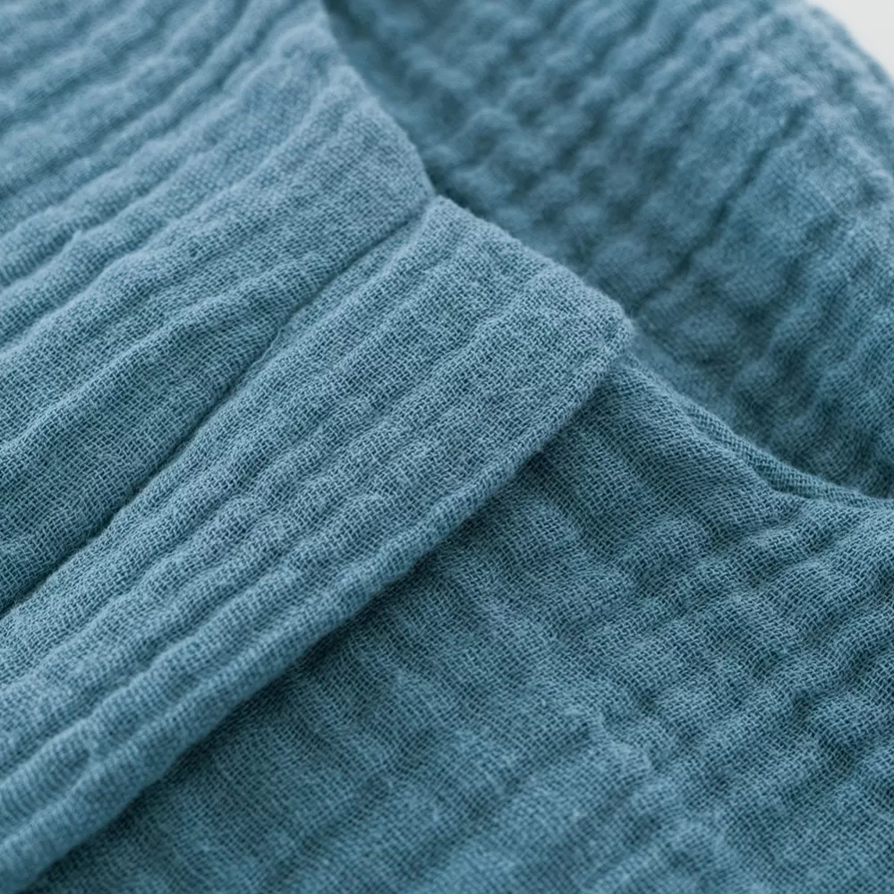 Nejdůležitější je, že látka je prodyšná. Volná a lehká vazba mušelínu umožňuje cirkulaci vzduchu a snižuje riziko přehřátí. Tato funkce zajišťuje, že se vaše dítě cítí pohodlně. Mušelín je také odolný. Výrobek vyrobený z přírodního vlákna mušelínu je extra odolný a vydrží vícenásobné praní – obrovská výhoda pro rodiče. S každým praním je dokonce měkčí.