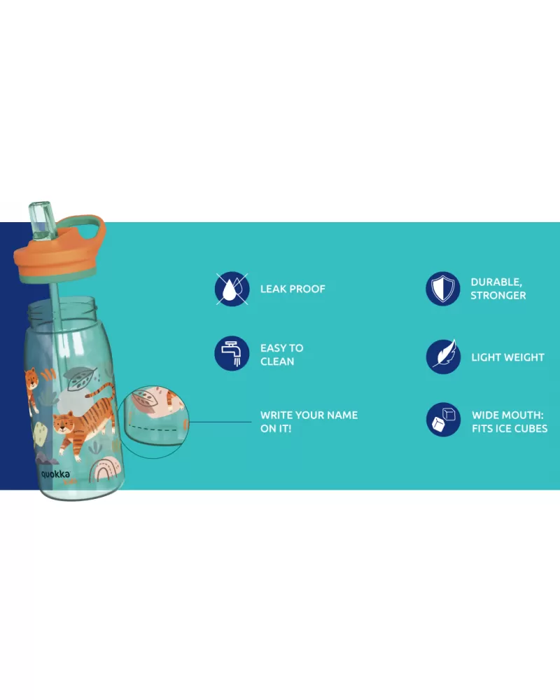 Dětská láhev Quokka Glow Kids s pítkem a brčkem umožňuje snadné pití bez nutnosti naklánění láhve. Zaklapávací pítko brání vylití obsahu láhve. Široké hrdlo umožňuje vložení kostek ledu či kousků ovoce a zároveň se díky němu láhev snadno čistí. Údržbu usnadňuje i odnímatelné široké brčko. Díky držadlu se láhev snadno přenáší.