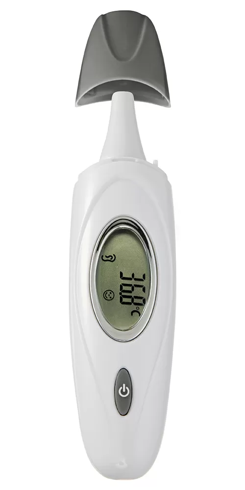 Teploměr lze využít nejen pro měření tělesné teploty, ale také teploty materiálu nebo okolního prostředí. Díky odnímatelnému nástavci lze teplotu těla snímat jak z ucha, tak i ze spánku měřené osoby. Optické a zvukové značení běžné a zvýšené tělesné toploty, společně s jediným tlačítkem umožňují velice jednoduchou obsluhu. Navíc má teploměr paměť až na 19 měření a zobrazuje aktuální nastavený čas.