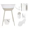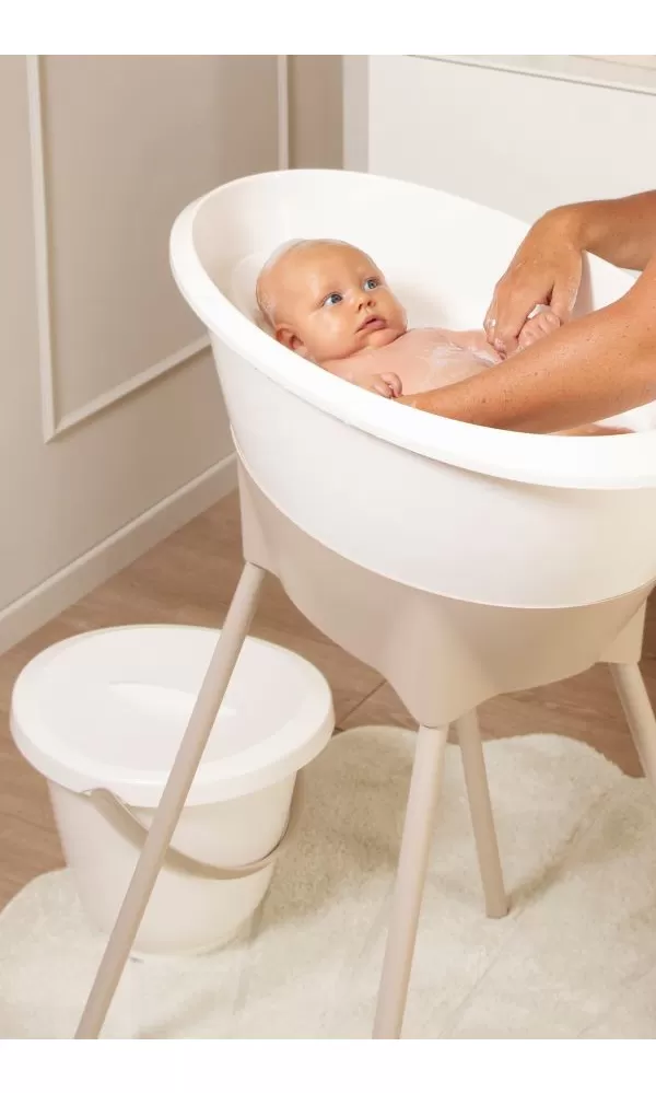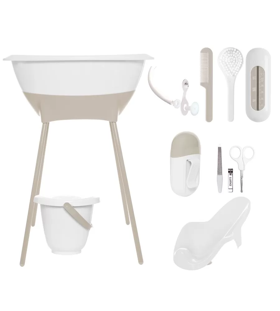 Máte rádi krásné moderní věci a nechcete za ně utratit příliš mnoho peněz? Tak si vyberte LUMU. Sada všech výrobků trendové holandské značky LUMA babycare, které budete ke koupání potřebovat sestává z dětské plastové vaničky, stojanu pod vaničku , kyblíku na pleny s víkem, koupacího lehátka, koupacího teploměru, hřebínku a kartáčku, dětské manikúry a odtokové hadice). Cena sady je zvýhodněná oproti koupi po jednotlivých kusech!