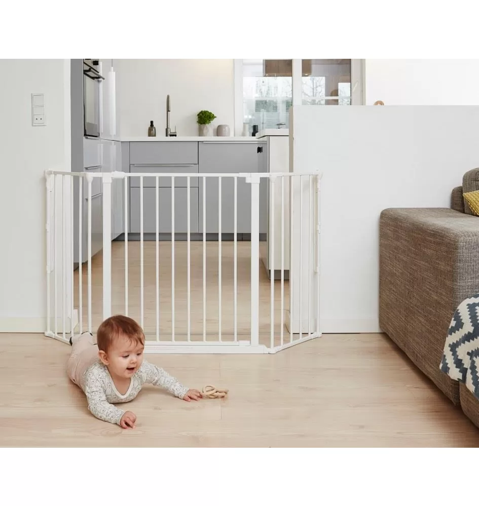 Parametry, normy, technické údaje: - Odpovídá chemickému testu EN 71–3. - Čistá hmotnost 6,84 kg - Výška zábrany 71 cm - Pro minimální otvor 90 cm - Pro maximální otvor 140 cm - Vyrobeno z kovu. - Barva bílá. - Vyhovuje nové normě EN 1930:2011 - vzdálenost mezi šprušlemi 5,5cm - Made in Denmark. Rozměry balení: 71 x 75 x 3,5 cm.