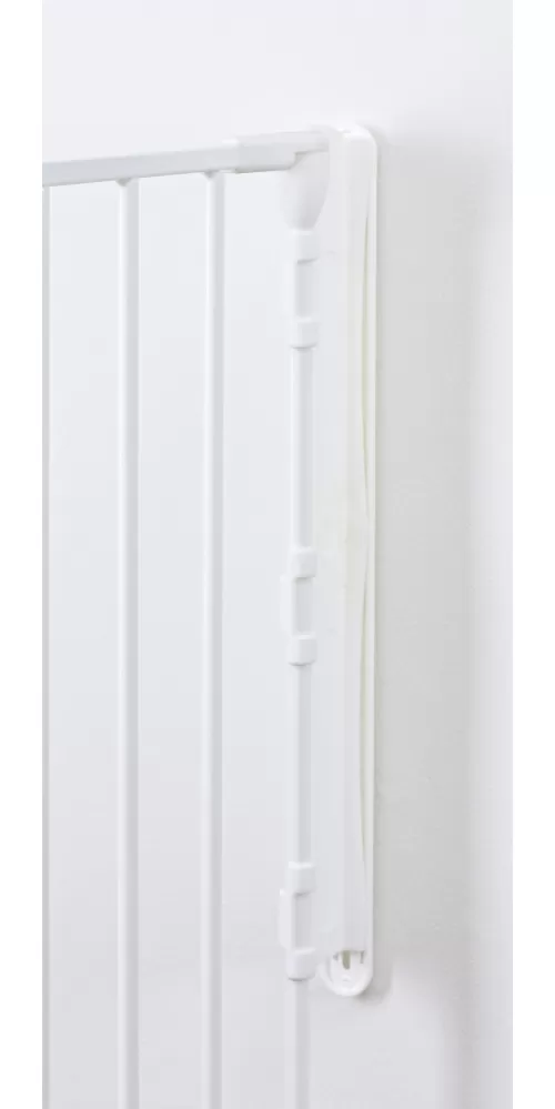 V balení najdete nástěnné lišty, které mají být namontovány na stěnu nebo rám dveří šroubováním. Musí se použít vždy, když je zábrana využívána! K lištám se zábrana připevňuje velmi snadno systémem Clip-off. Systém Clip-off: zábrana se může ze stěnového kování snadno odejmou a uložit, pokud ji nepotřebujete nebo naopak nasadit, jakmile ji používat začnete. Pokud naistalujete druhé ( dokoupené) stěnové kování na jiné místo, můžete zábranu lehce přemisťovat podle potřeby.