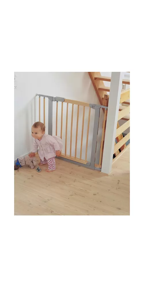 Rozměr dvířek 54 cm. Výška zábrany 73 cm. Materiál buk/světle šedá.