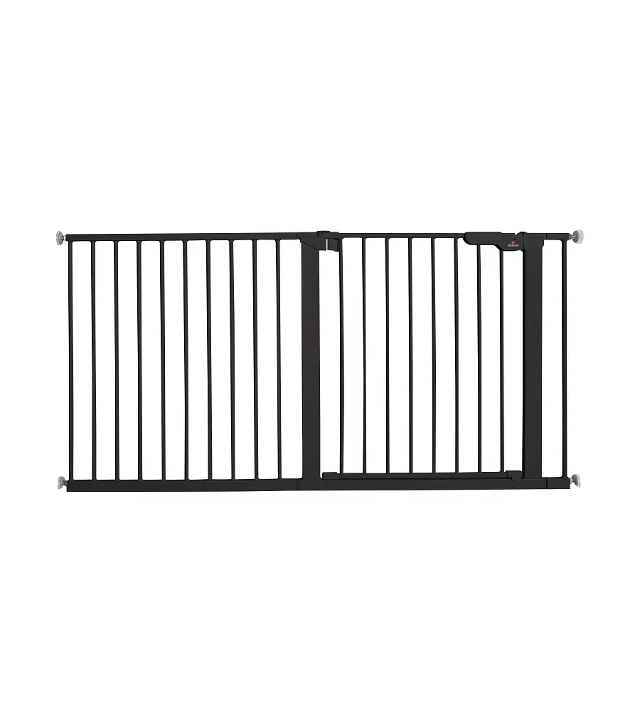 Tato bezpečnostní zábrana BabyDan Premier v černé barvě je ideální pro extra široké dveře, chodby a vstupní prostory v domácnosti od 145,5 a 151,7 cm. Zábrana se upevňuje tlakově, takže se vyhnete vrtání otvorů do zdi. Místo toho můžete použít pouze dodané nástěnné úchyty s páskou. Bezpečnostní zábrana se velmi snadno sestavuje a nastavuje a a veškeré potřebné nářadí je součástí balení. Můžete také použít naši aplikaci Onbox, která ukazuje instalaci mřížky krok za krokem.