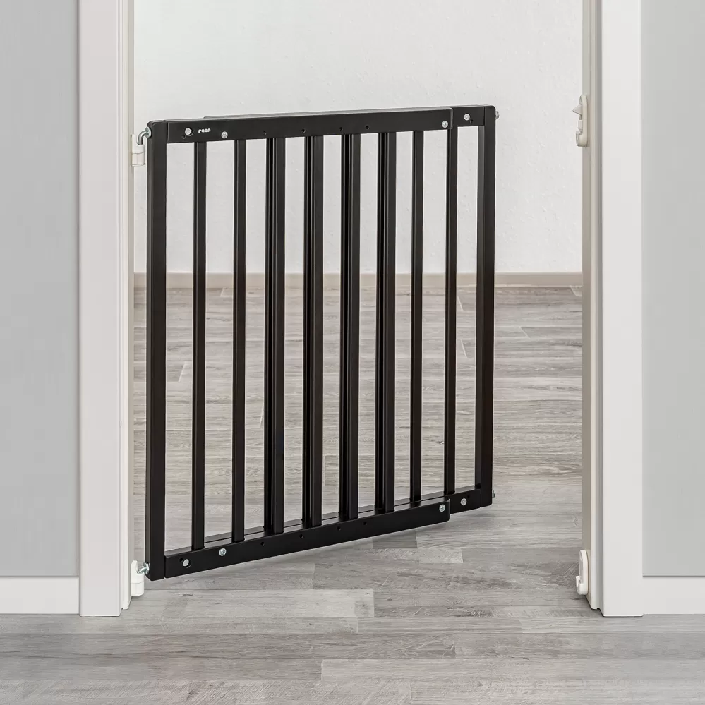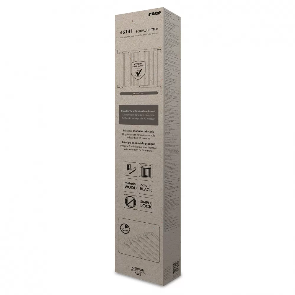 Zábrana má praktický modulární princip: snadná montáž za méně než 10 minut díky zásuvnému systému. Bezbariérový průchod bez nebezpečí zakopnutí: ideální pro použití i na schodech. Šířka plynule nastavitelná od 63-103,5 cm. Dvojitý uzamykací systém. Lze pohodlně otevřít v obou směrech; vč. nástěnné desky se zátkou. Lze flexibilně použít jako dveřní nebo schodišťovou zábranu. Zvláště udržitelné: malá a praktická velikost balení chrání životní prostředí díky o 60 % méně odpadu z obalů.