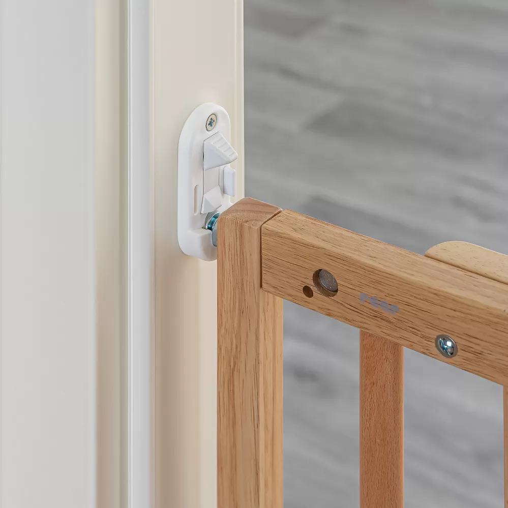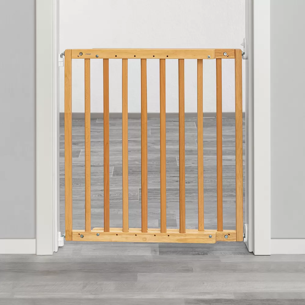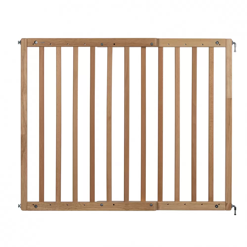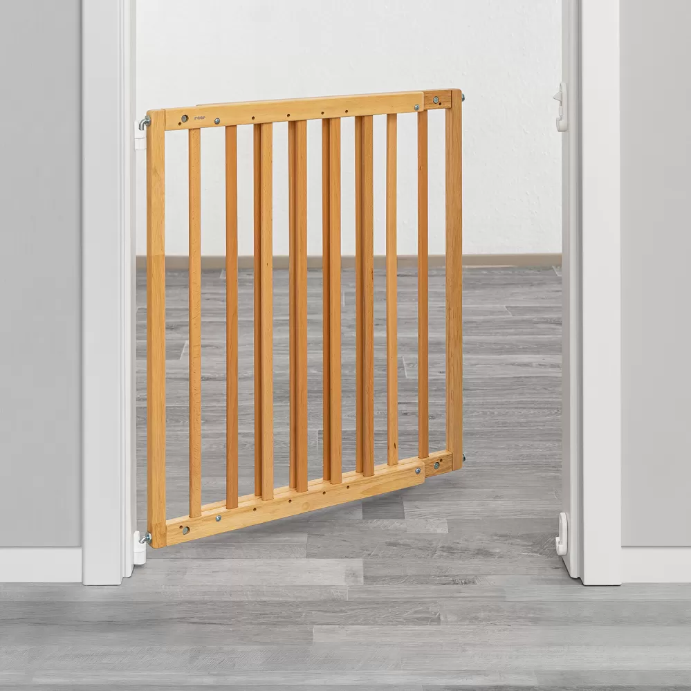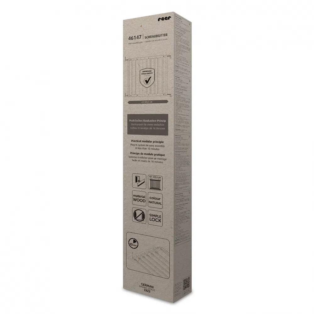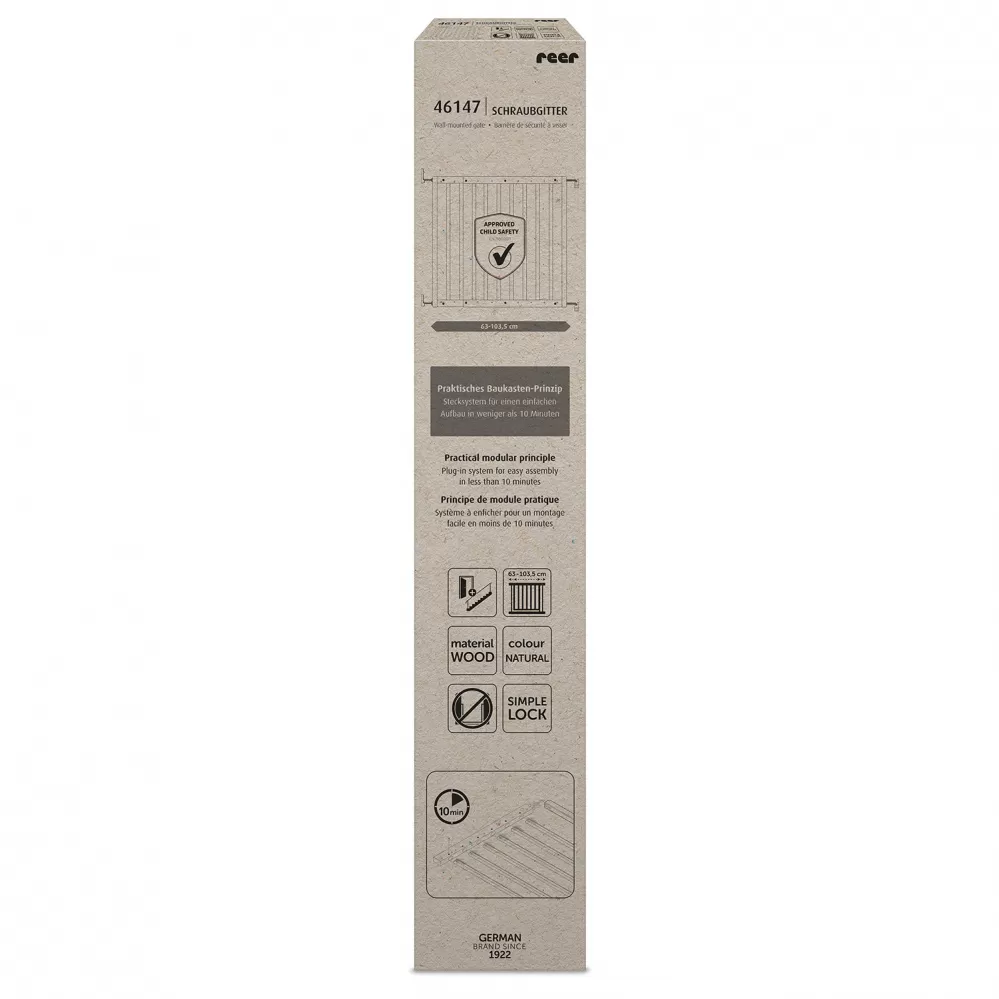 Zábrana má praktický modulární princip: snadná montáž za méně než 10 minut díky zásuvnému systému. Bezbariérový průchod bez nebezpečí zakopnutí: ideální pro použití i na schodech. Šířka plynule nastavitelná od 63-103,5 cm. Dvojitý uzamykací systém. Lze pohodlně otevřít v obou směrech; vč. nástěnné desky se zátkou. Lze flexibilně použít jako dveřní nebo schodišťovou zábranu. Zvláště udržitelné: malá a praktická velikost balení chrání životní prostředí díky o 60 % méně odpadu z obalů.