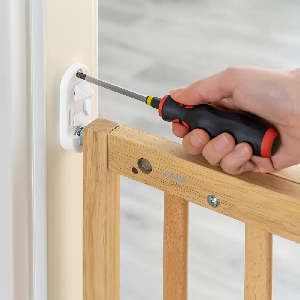 Jakmile vaše děti začnou lézt, chtějí začít zkoumat své prostředí. V tak nízkém věku však ještě nedokážou rozpoznat a správně posoudit nebezpečí. To může často vést k drobným, ale i vážnějším nehodám. Aby si děti mohly užívat bezstarostné objevování světa kolem sebe, je třeba přijmout správná opatření, aby jejich prostředí bylo chráněno před dětmi. Šroubovací bezpečnostní zábrana vám pomůže spolehlivě zajistit oblasti schodiště, zabránit nebezpečným pádům a vytvořit bezpečné prostředí pro vaše dítě.