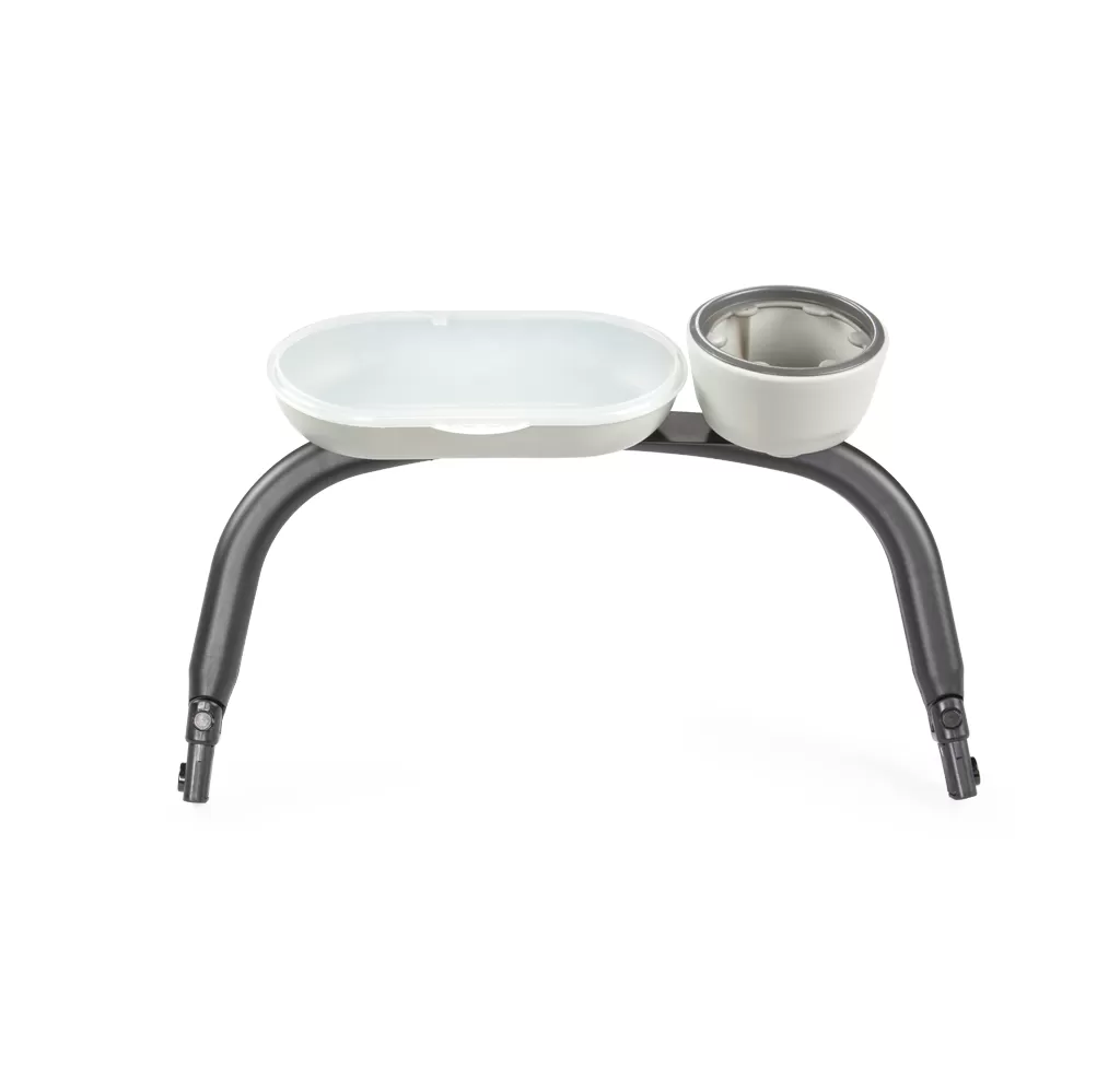 Snadno odnímatelný přední pult s držákem na pohár, vaše dítě má vše po ruce. Držák na láhve a nádoba na potraviny jsou vhodné do myčky nádobí.