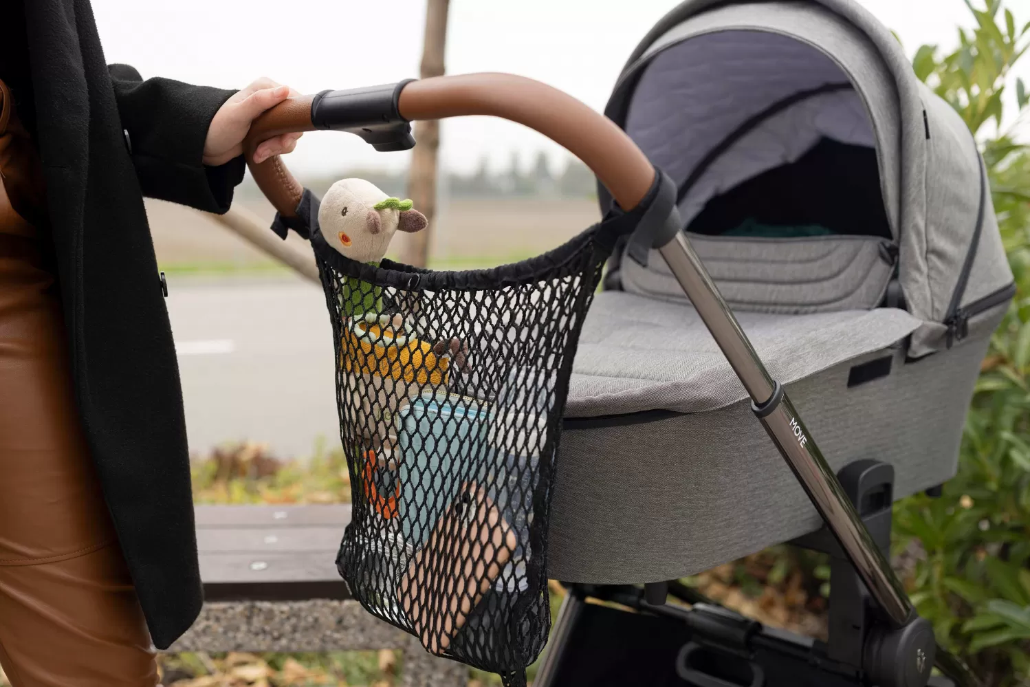 Síťová taška na kočárek vám umožní mít všechny nezbytnosti ihned po ruce. Dá se snadno instalovat pomocí suchých zipů na rukojeť kočárku a je kompatibilní se všemi modely. Taška je vyrobena z odolného a elastického materiálu (nosnost do 2,5 kg). Je prostorná a díky možnosti uzavření z ní nic neztratíte.