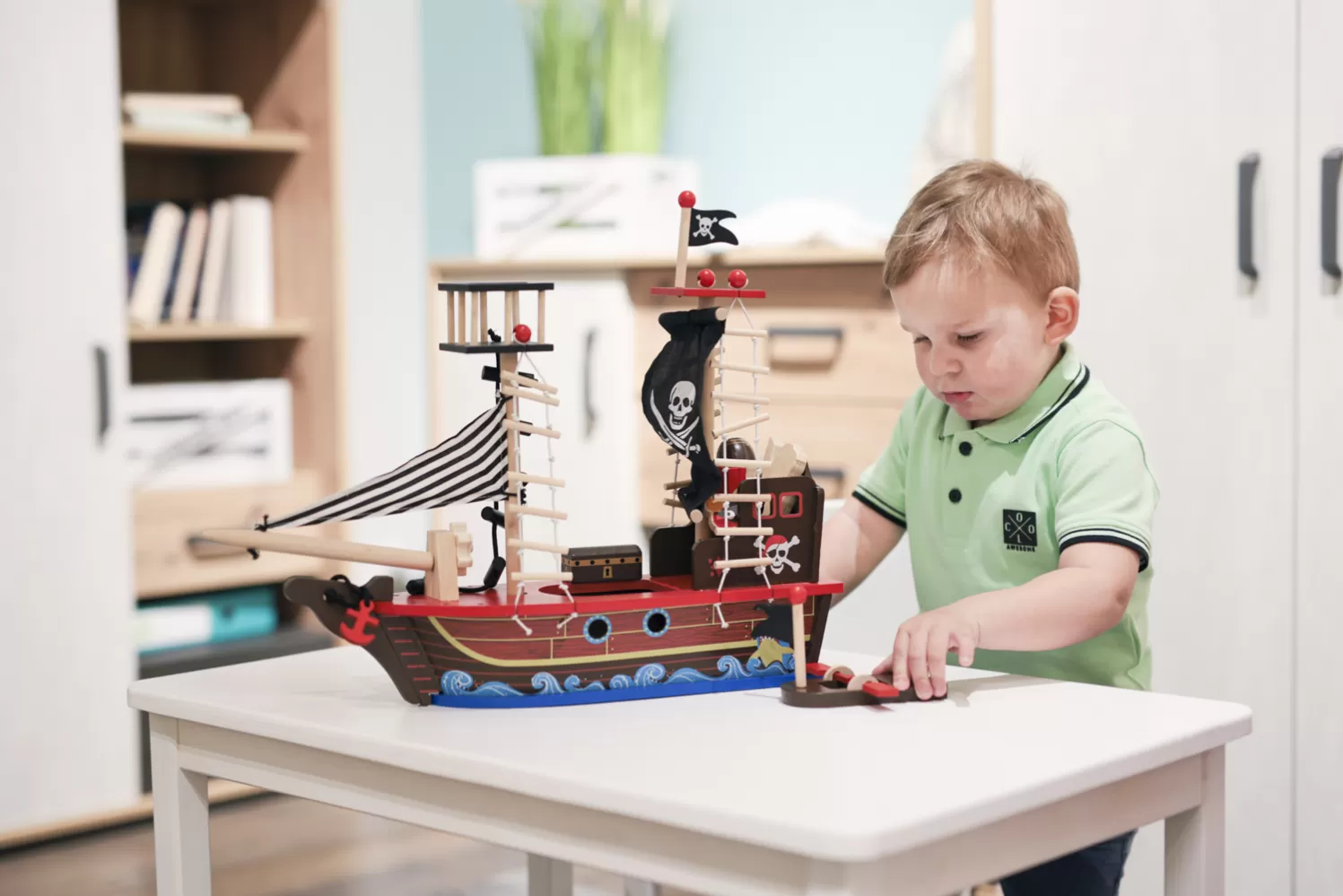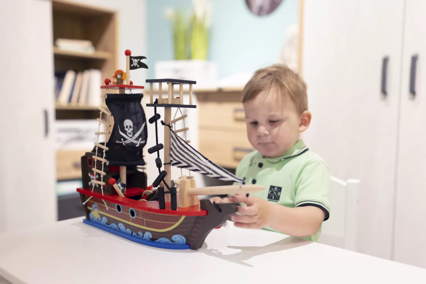 Pirátská loď podporuje rozvoj jemné motoriky, fantazii a představivost dítěte. Díky koordinaci ruka-oko, kterou při hře vyžaduje, se posiluje jeho schopnost komunikace a sebevědomí. S touto lodí má dítě v balení vše potřebné pro dobrodružnou hru s piráty.