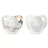 Dudlík je velkým pomocníkem pro klid Vašeho miminka, ať již při spánku nebo vycházce. Je dokázáno, že sání dudlíku uvolňuje endorfin, takzvaný hormon štěstí, který přináší miminku příjemný pocit, který ho uklidňuje a konejší. Dopřejte miminku dudlík místo prstů či pěstičky, protože tato varianta může velmi porušit dentální vývoj. Veškeré savičky i dudlíky jsou podpořeny a vyráběny ve spolupráci s Asociací španělských dětských ortodontistů a respektují přirozený vývoj dásní, zubů i patra dítěte. Barvy použité pro dekorování výrobků značky Suavinex jsou přírodní a netoxické.