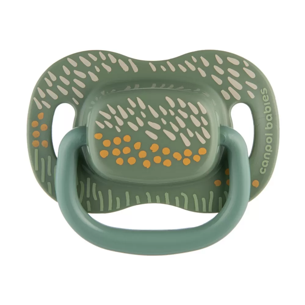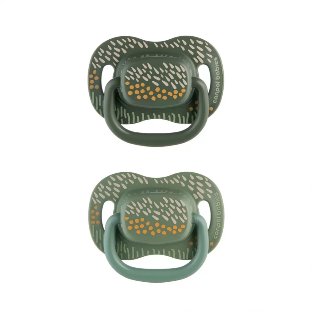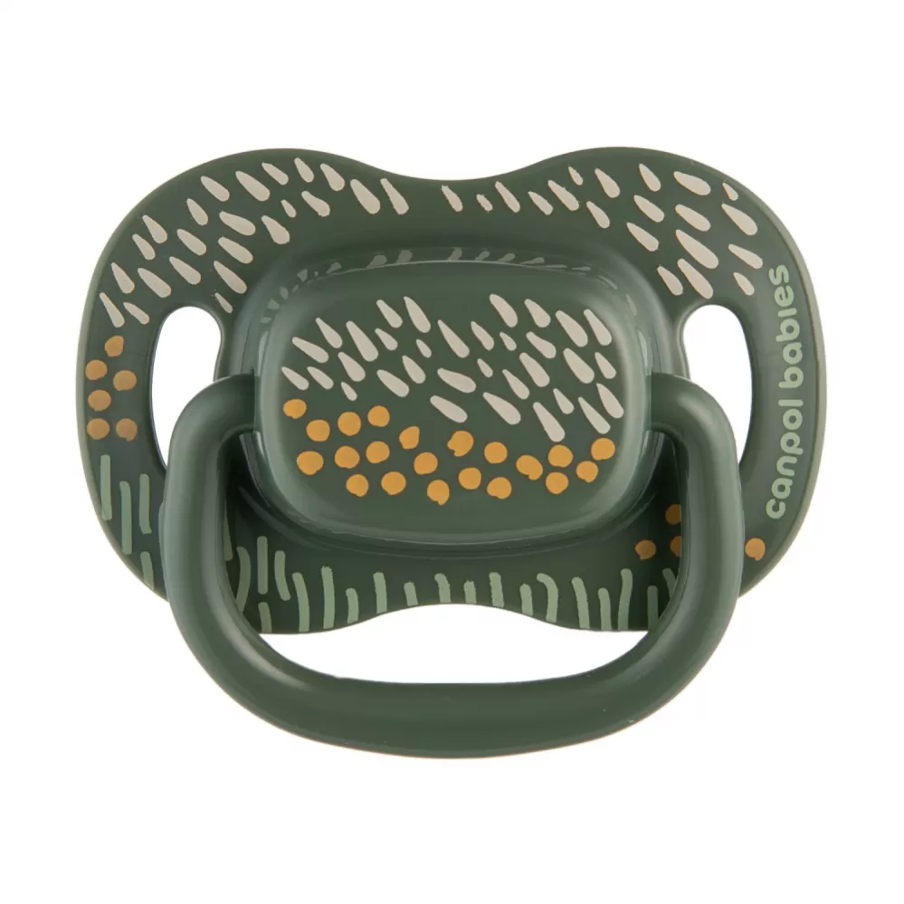 Dudlík je nerozlučným kamarádem každého miminka, který přinese pohodlí a zklidní neustálou potřebu sát. Symetrický dudlík se dobře přizpůsobí ústům dítěte bez ohledu na jeho přesné umístění a jeho tvar je považován za nejfyziologičtější, podporuje zachování přirozeného rytmu sání a správný vývoj řeči. Špička je vyrobena z nejkvalitnějšího, bezpečného a jemného silikonu. Je bez zápachu a chuti, což miminku usnadňuje přijetí dudlíku. Speciálně profilovaný štítek umožňuje dítěti volně dýchat nosem a minimalizuje otisky dudlíku na jemnou tvář dítěte. Další větrací otvory umožňují pokožce dýchat a zabraňují podráždění. Praktický úchyt dudlíku usnadňuje jeho podávání dítěti a umožňuje připevnit řetízek nebo stuhu na dudlík, který ochrání dudlík před ztrátou nebo pádem na zem a zašpiněním. Canpol babies symetrický silikonový dudlík Mountains je pevný a odolný proti deformaci. Dudlík je bezpečný a snadno se udržuje v čistotě, a to díky modernímu pouzdru, kterou lze použít jak pro skladování, tak pro rychlou a pohodlnou dezinfekci v mikrovlnné troubě. Stačí trocha vody a 2 minuty, aby byly dudlíky hygienicky čisté. Při výrobě nebylo použito BPA ani jiné škodlivé látky. Symetrický silikonový dudlík Canpol babies se doporučuje pro děti od 18 měsíců. Canpol babies symetrický dudlík Mountains je dostupný ve dvou barvách a různých velikostech – roste s vaším miminkem.