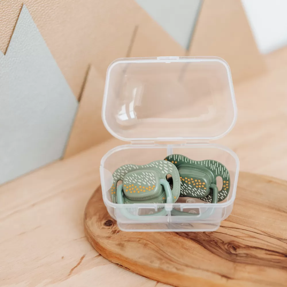 Vlastnosti: - 100% bezpečný hypoalergenní silikon – bez zápachu a chuti. - Gumička dudlíku má symetrický tvar. - Dudlík je pevný a odolný proti deformaci. - Odvětrávaný štítek – zajišťuje volné dýchání a zabraňuje podráždění pokožky. - Dezinfekční kapsle pro snadnou a rychlou dezinfekci v mikrovlnné troubě. - Pohodlný úchyt – usnadňuje předávání dudlíku miminku a připevnění ke stužce nebo řetízku. - Vhodné pro děti od 18 měsíců. - Neobsahuje BPA.