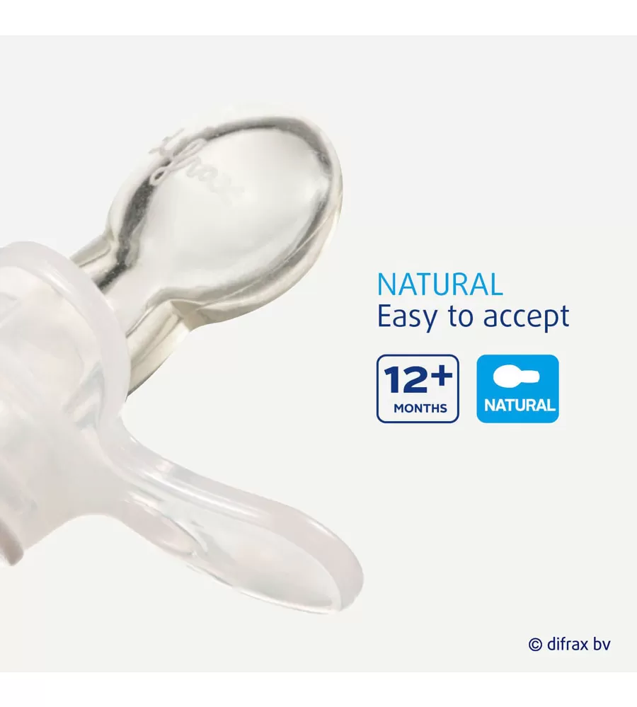 Dudlík Difrax uklidňuje dítě i matku. Náš dudlík vám nabízí pohodlí a dítěti klid, tím že se vaše dítě při cumlání cítí bezpečně, i když nejste u něj. Prořezávající se zoubky vytvářejí tlak v dásních a první pomocí bývá dudlík. Navíc je dudlík je šetrnější k zubům než palec, je hygieničtější a bezpečnější. A odvykání od dudlíku je také snazší než odvykání od sání palce. Anatomicky tvarovaná silikonová savička je svou tvrdostí kompromisem mezi měkčí u dudlíku 6+ a tvrdší u 18+. Pro miminko je tak dudlík 12+ začátkem pro postupné odvykání si od dudlání.