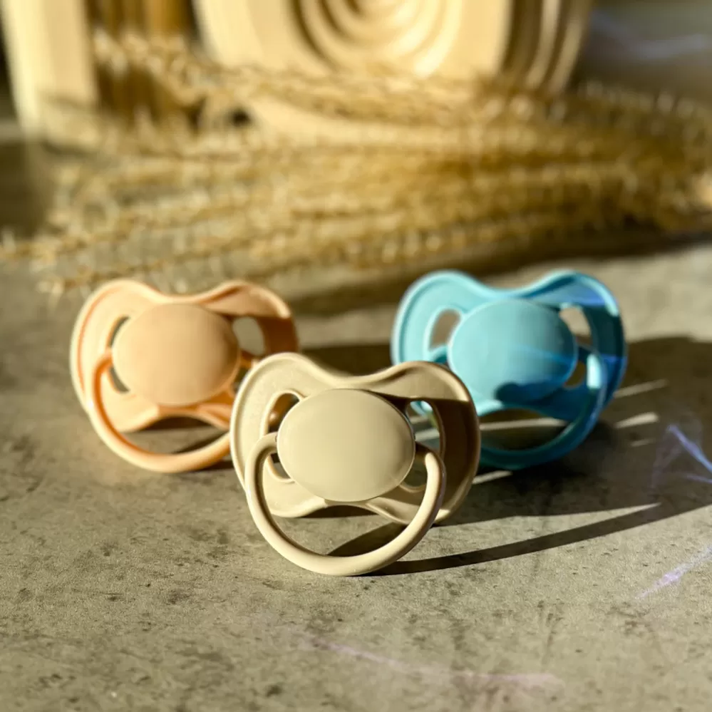 Kaučukový dudlík se špičkou kulatého tvaru v přírodních barvách z kolekce NUDE. Je vyroben z přírodního kaučuku, který je charakteristicky nažloutlý a matný.