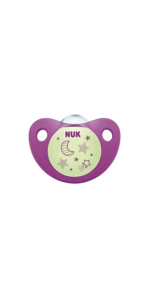 NUK Den a Noc silikonový dudlík pro správný vývoj ústní dutiny dítěte, věk 6-18 měsíců, různé barvy
